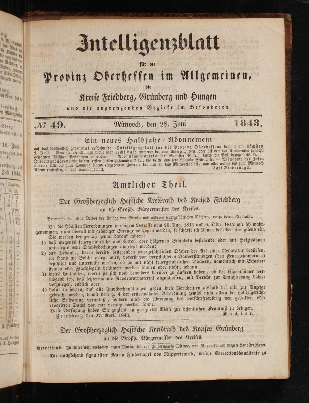 Intelligenzblatt für die Provinz Oberhessen. 1834-1834