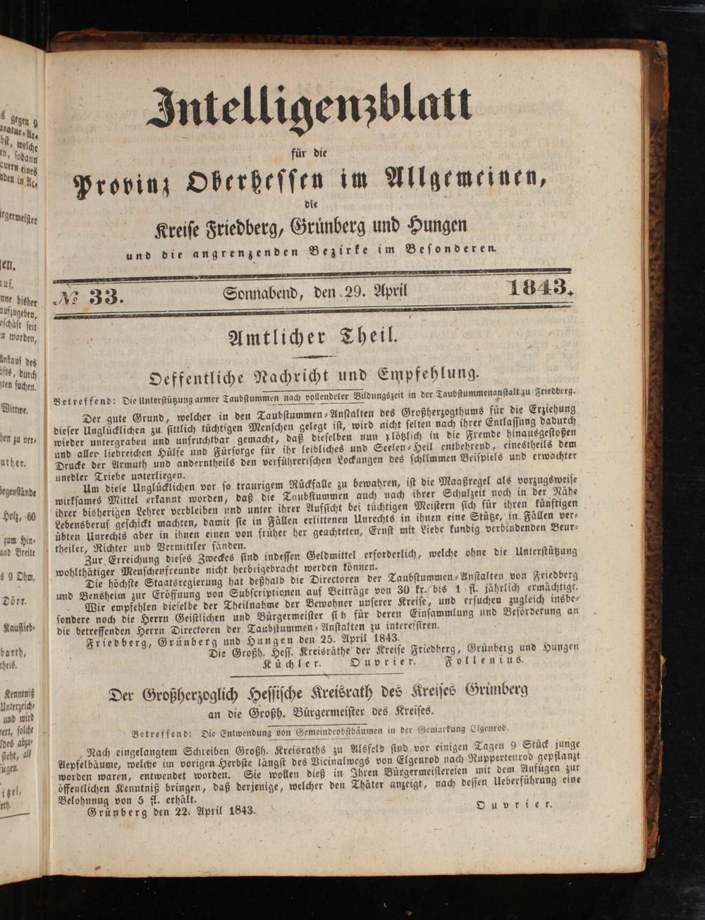 Intelligenzblatt für die Provinz Oberhessen. 1834-1834