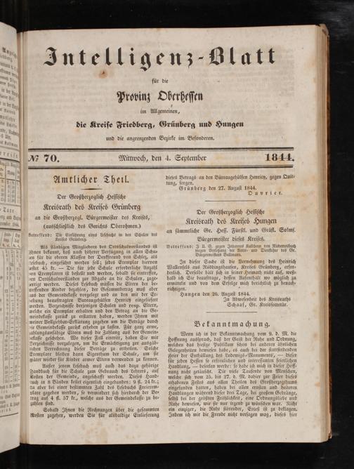 Intelligenzblatt für die Provinz Oberhessen. 1834-1834