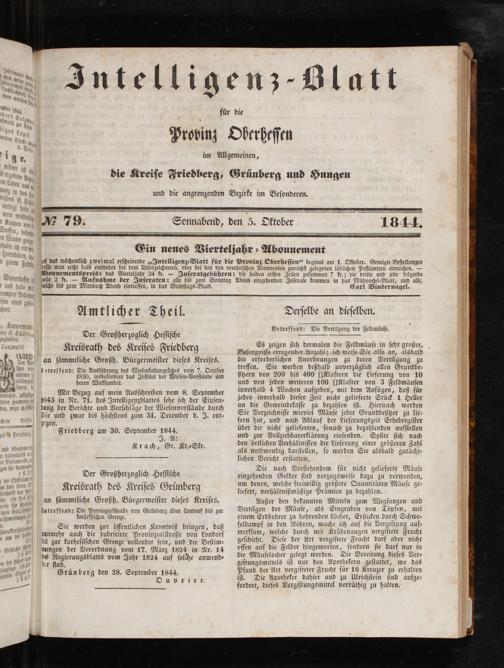 Intelligenzblatt für die Provinz Oberhessen. 1834-1834