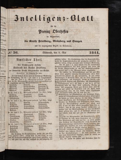 Intelligenzblatt für die Provinz Oberhessen. 1834-1834