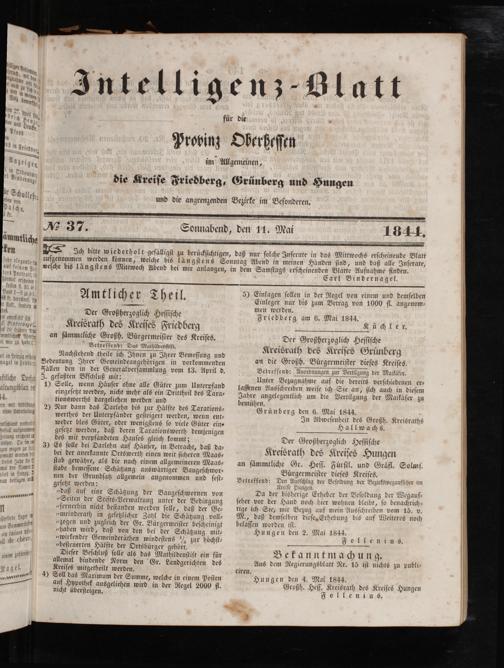 Intelligenzblatt für die Provinz Oberhessen. 1834-1834