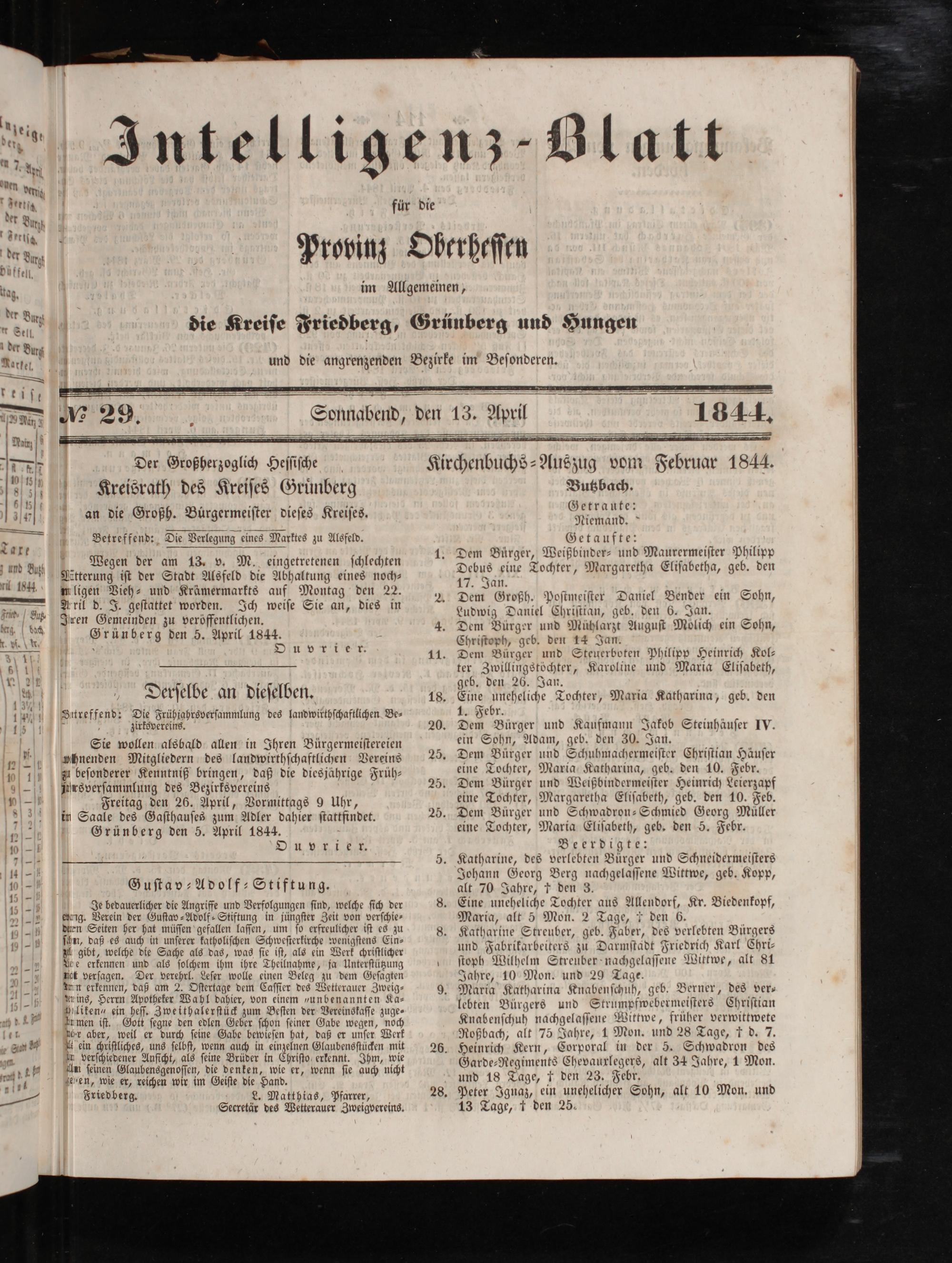 Intelligenzblatt für die Provinz Oberhessen. 1834-1834