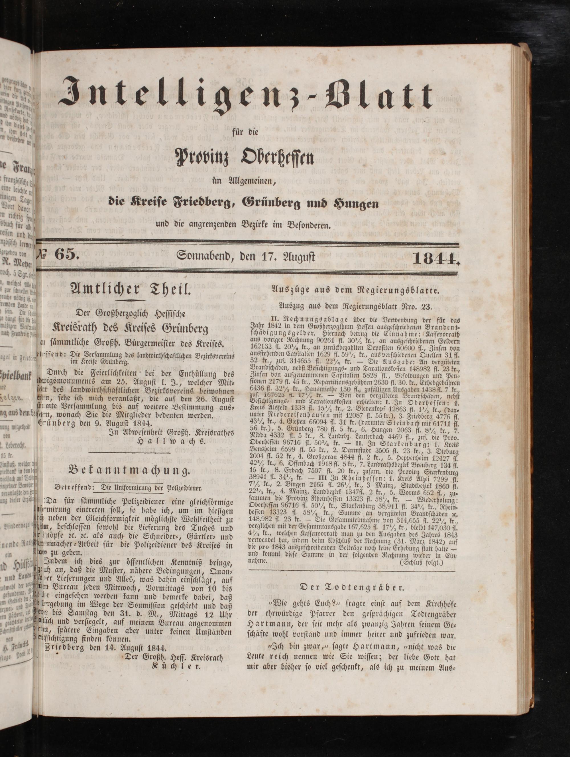 Intelligenzblatt für die Provinz Oberhessen. 1834-1834