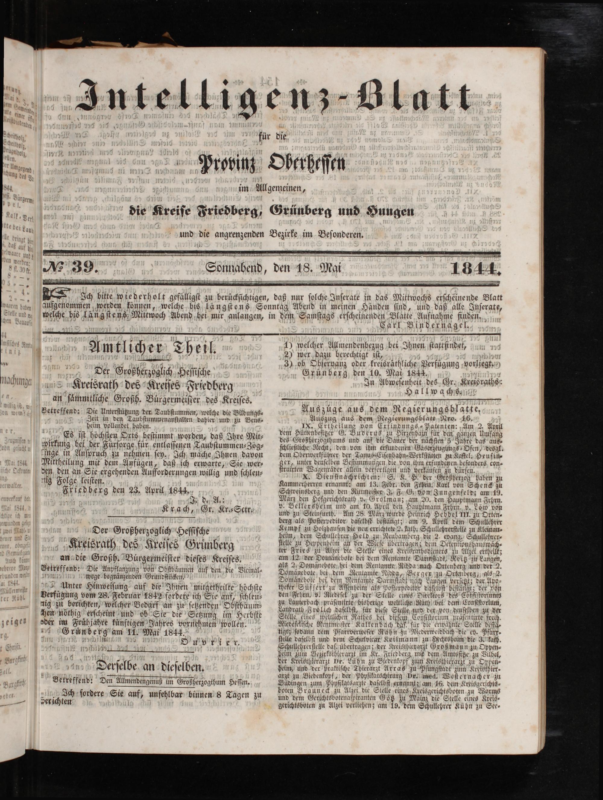 Intelligenzblatt für die Provinz Oberhessen. 1834-1834
