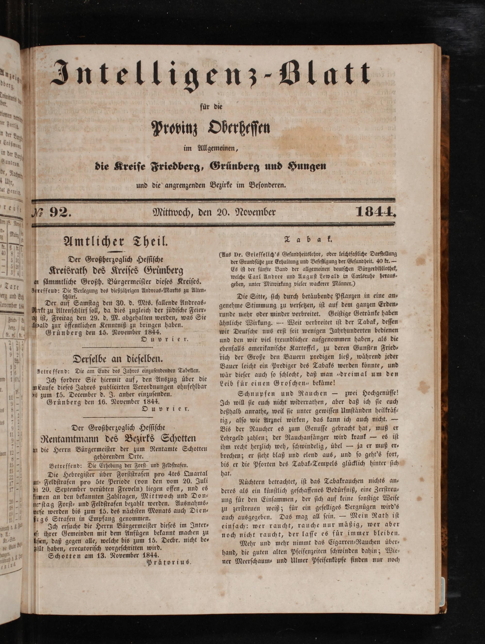 Intelligenzblatt für die Provinz Oberhessen. 1834-1834