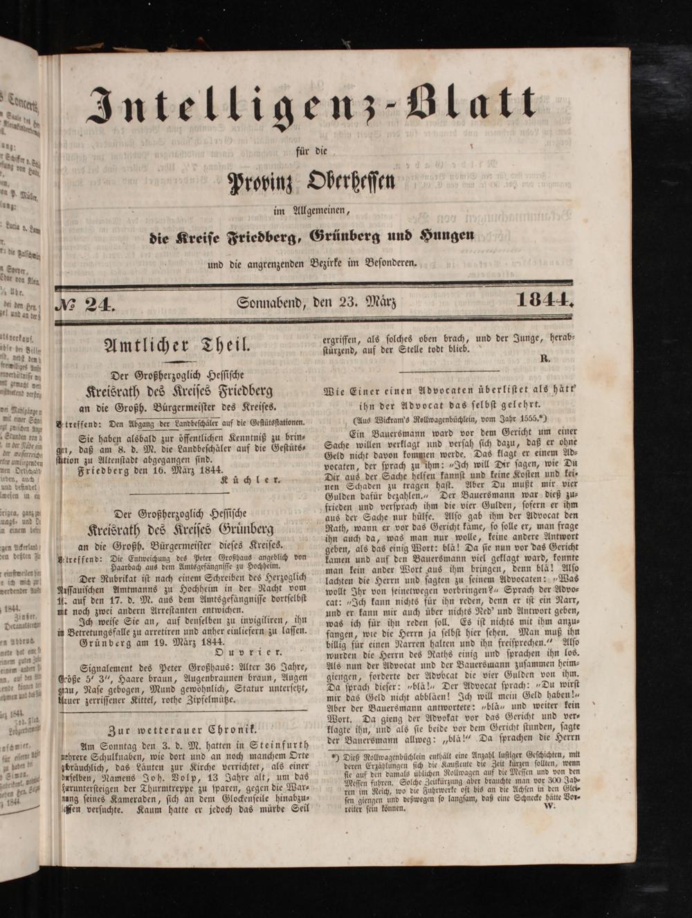 Intelligenzblatt für die Provinz Oberhessen. 1834-1834