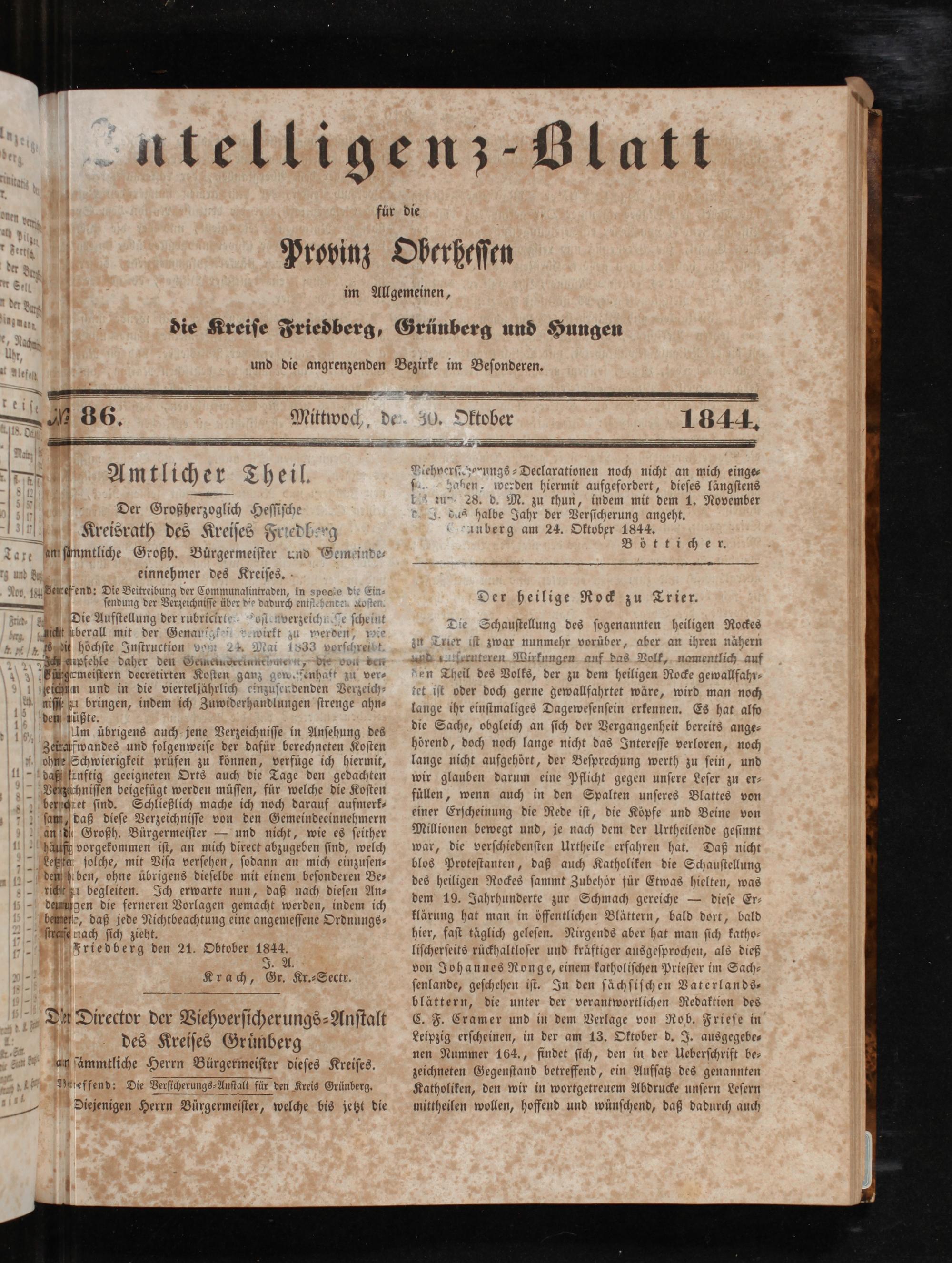 Intelligenzblatt für die Provinz Oberhessen. 1834-1834