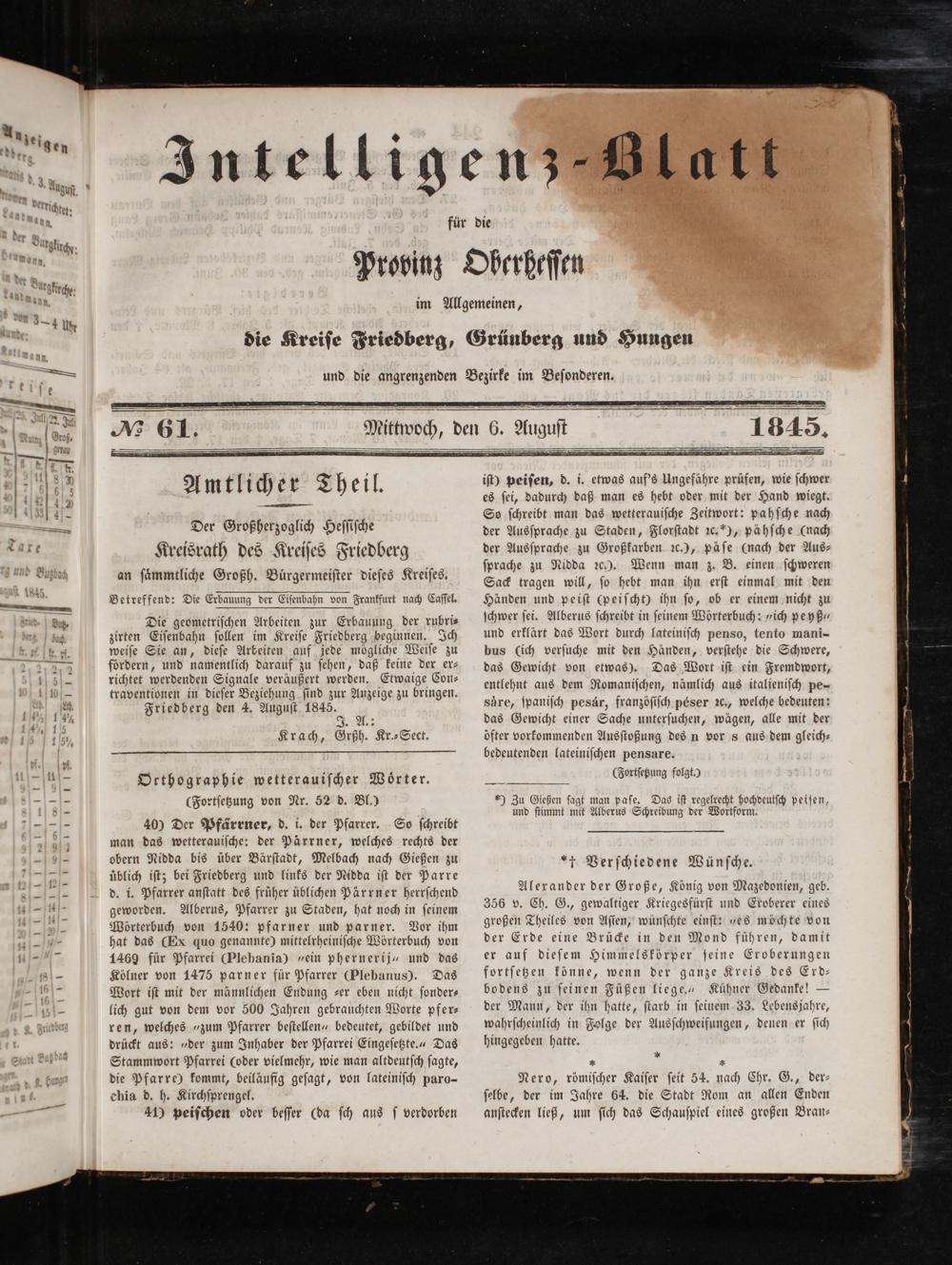 Intelligenzblatt für die Provinz Oberhessen. 1834-1834