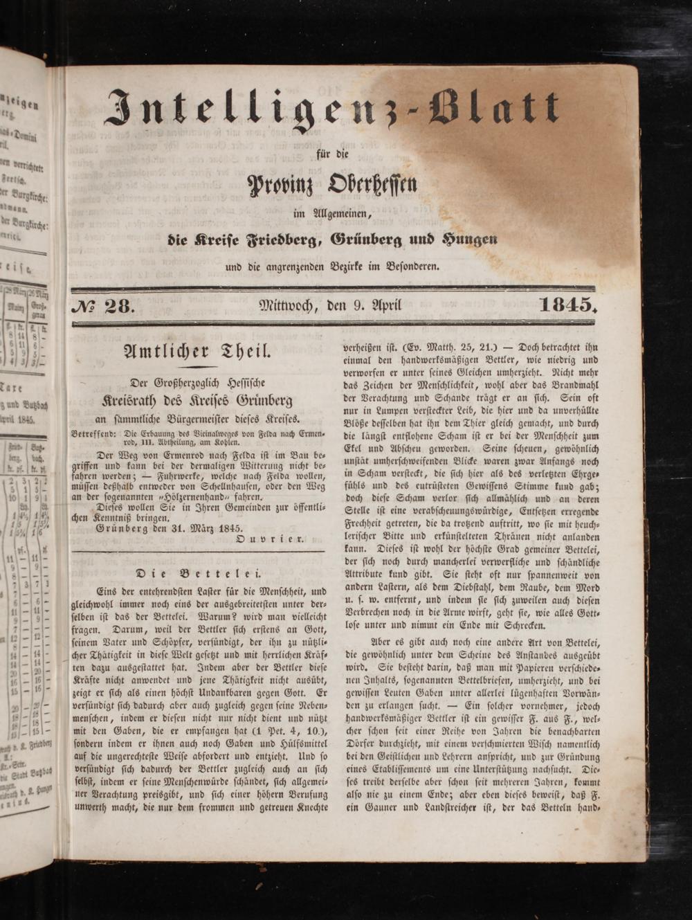 Intelligenzblatt für die Provinz Oberhessen. 1834-1834