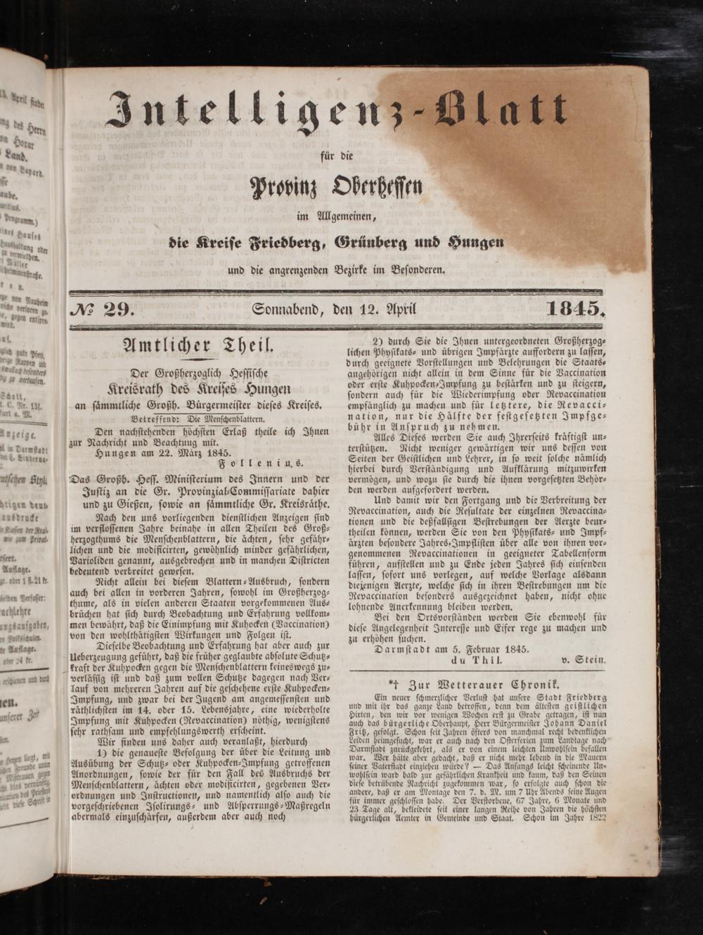 Intelligenzblatt für die Provinz Oberhessen. 1834-1834
