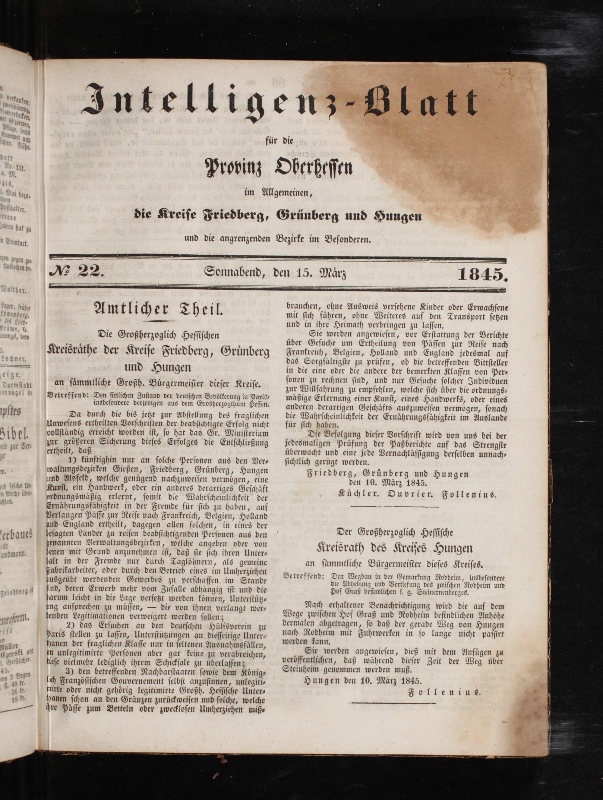 Intelligenzblatt für die Provinz Oberhessen. 1834-1834