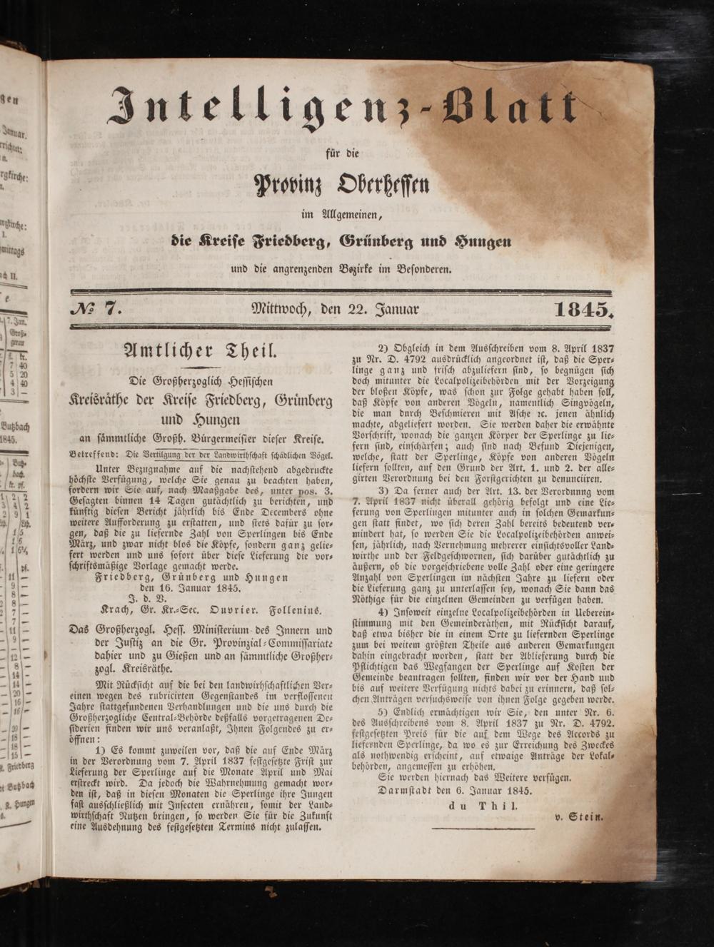 Intelligenzblatt für die Provinz Oberhessen. 1834-1834