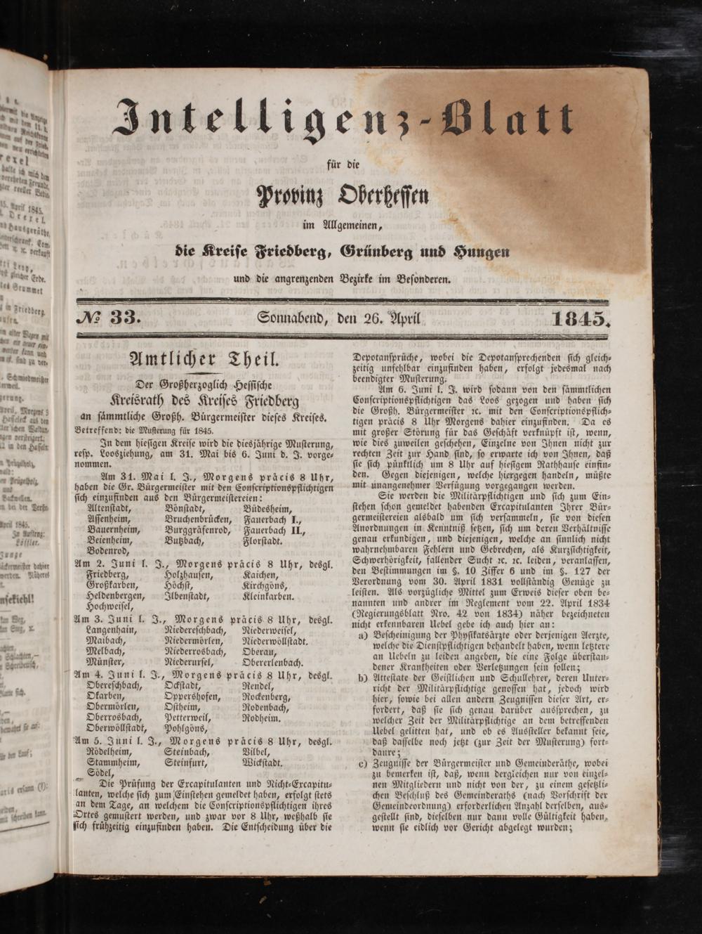 Intelligenzblatt für die Provinz Oberhessen. 1834-1834