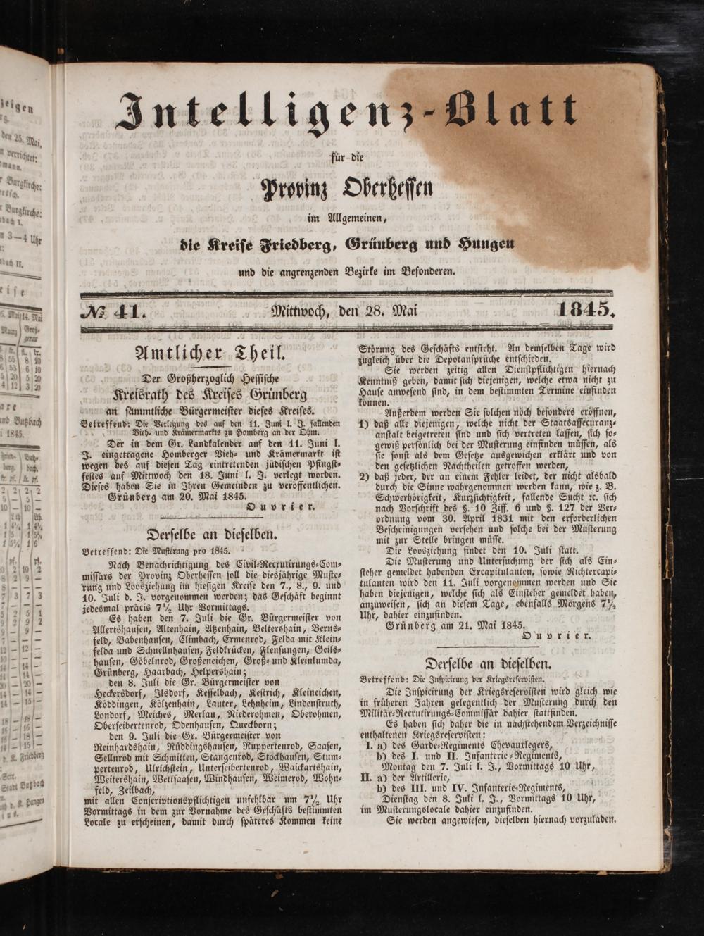 Intelligenzblatt für die Provinz Oberhessen. 1834-1834