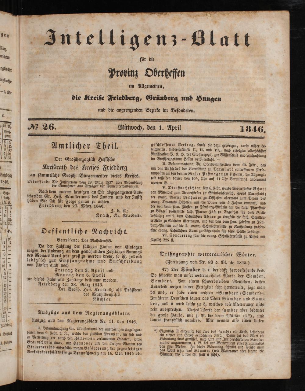 Intelligenzblatt für die Provinz Oberhessen. 1834-1834