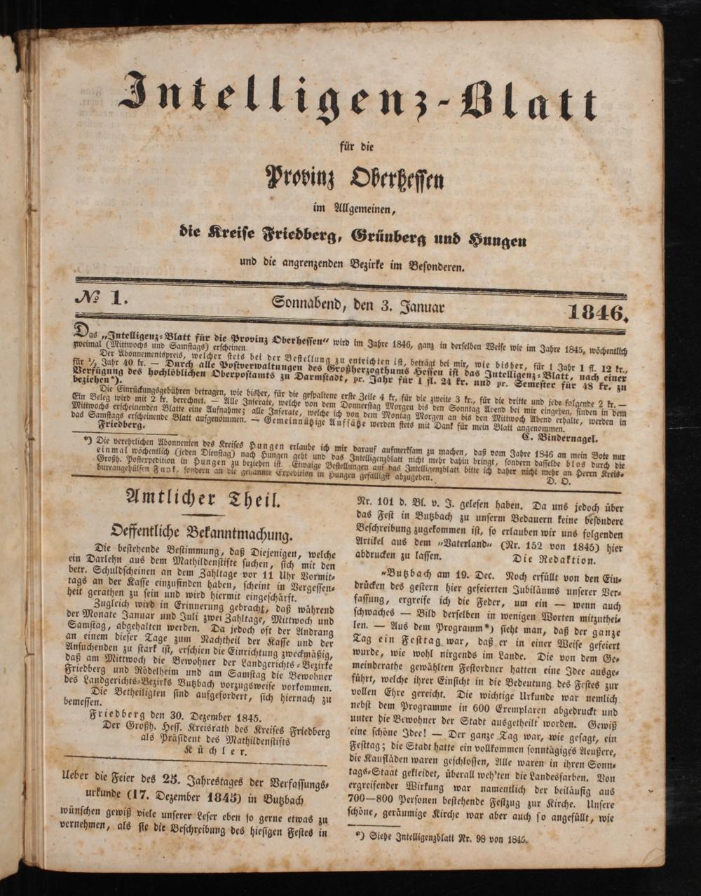 Intelligenzblatt für die Provinz Oberhessen. 1834-1834