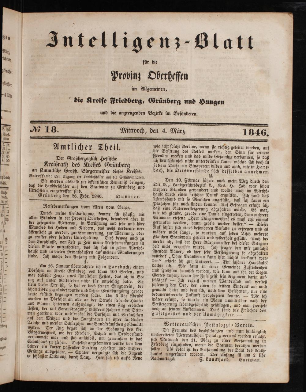 Intelligenzblatt für die Provinz Oberhessen. 1834-1834