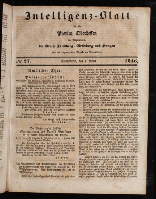 Intelligenzblatt für die Provinz Oberhessen. 1834-1834