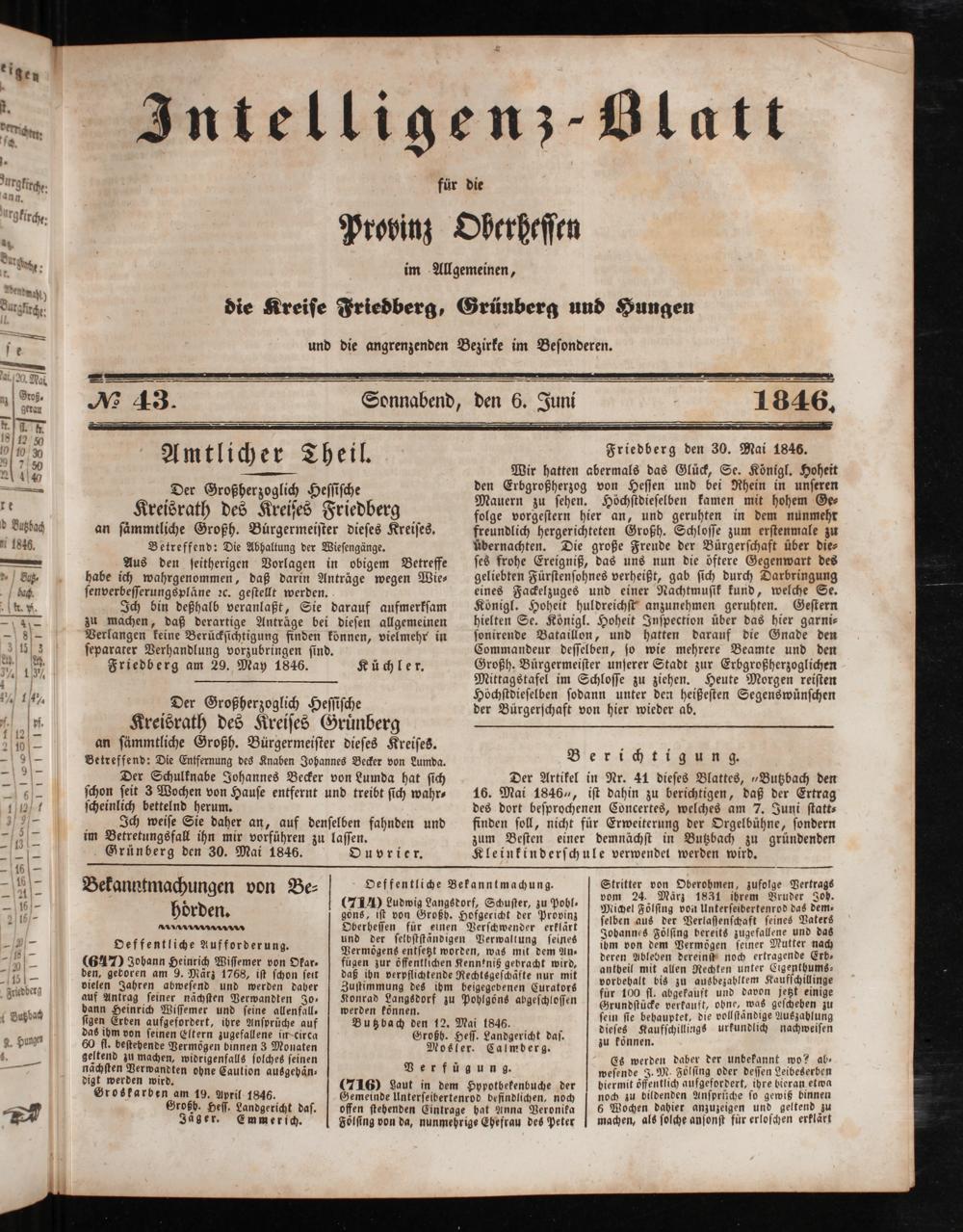 Intelligenzblatt für die Provinz Oberhessen. 1834-1834