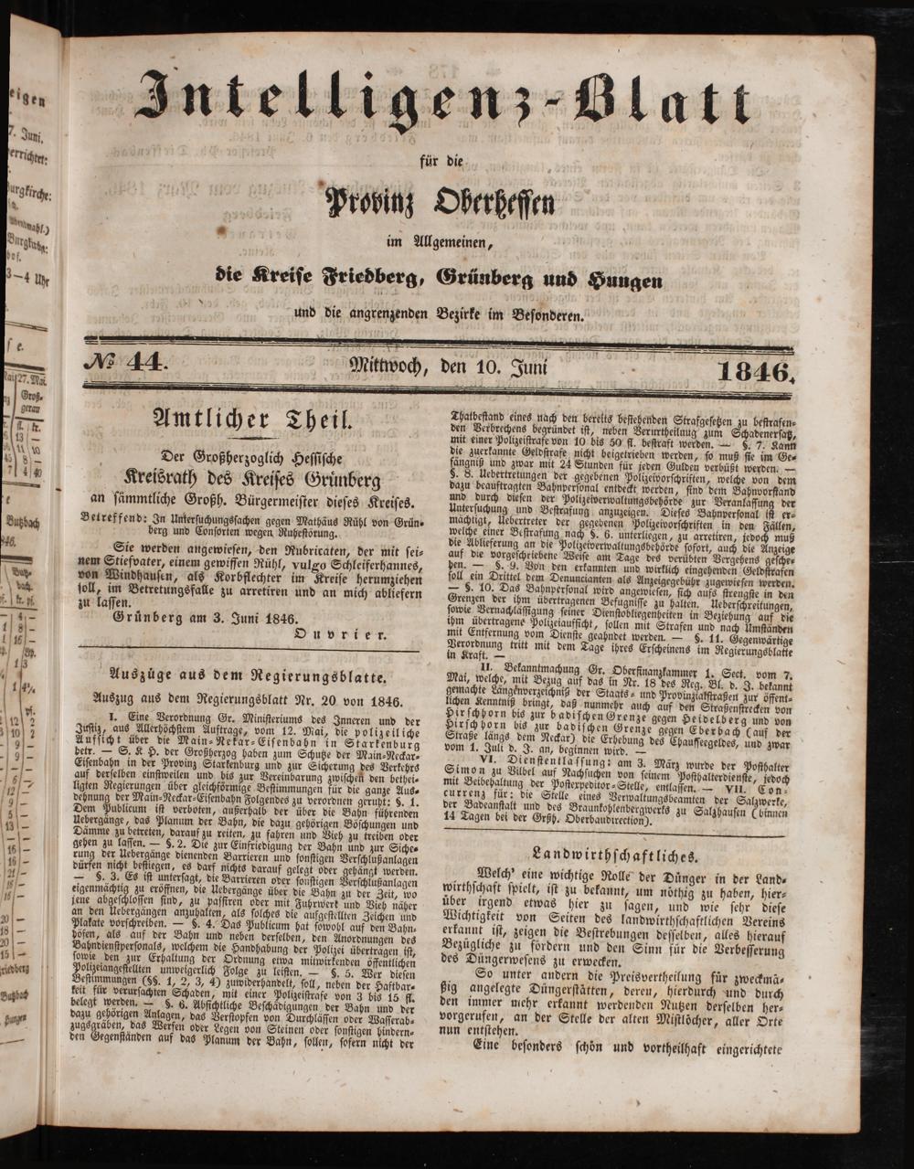 Intelligenzblatt für die Provinz Oberhessen. 1834-1834