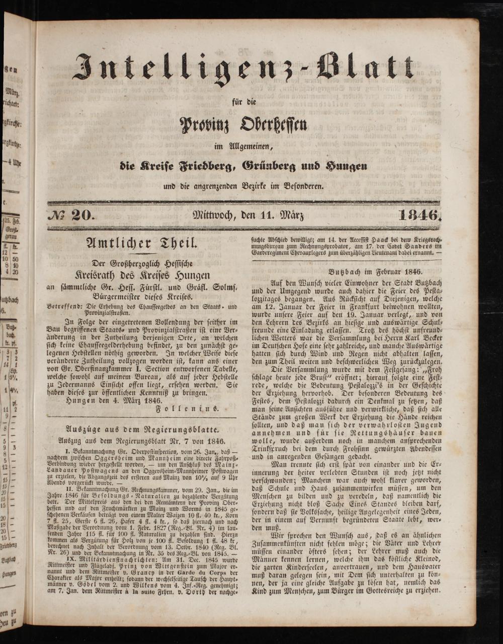 Intelligenzblatt für die Provinz Oberhessen. 1834-1834