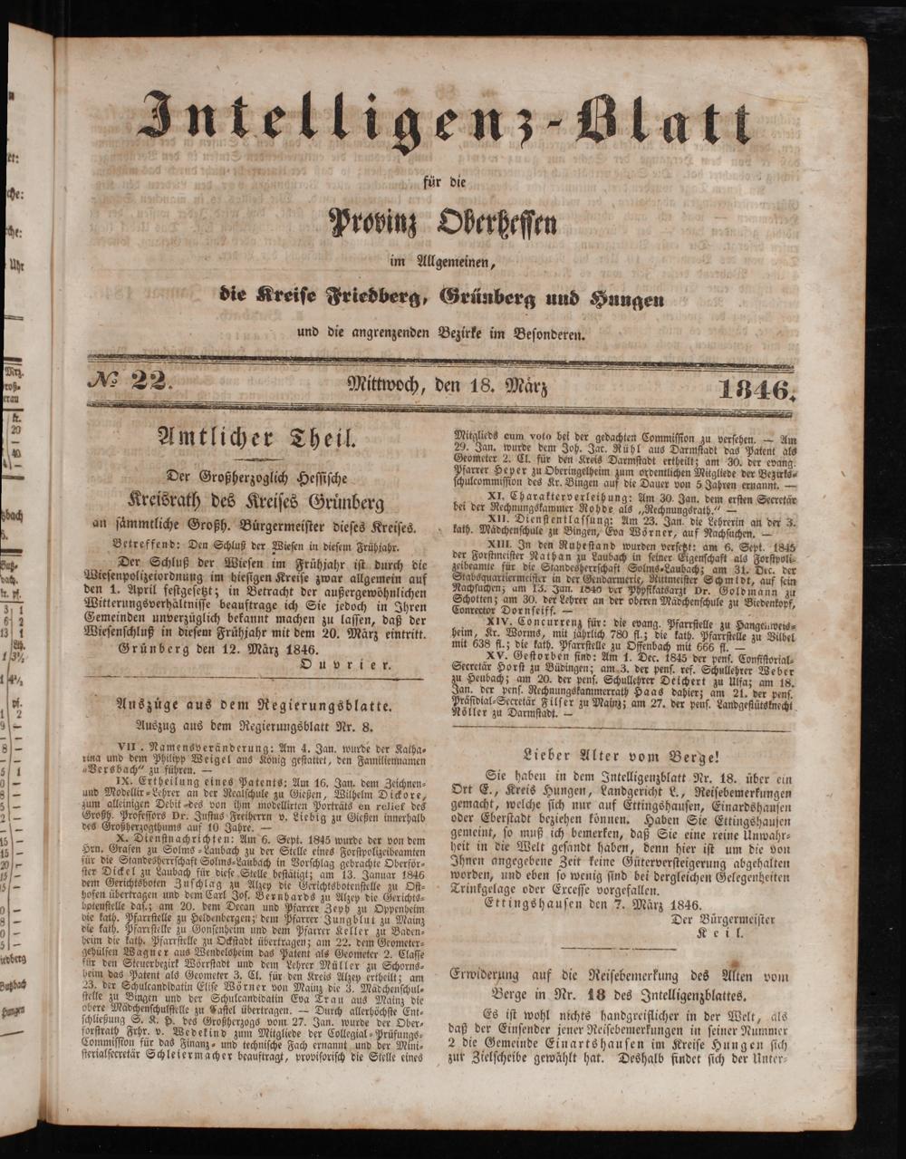 Intelligenzblatt für die Provinz Oberhessen. 1834-1834