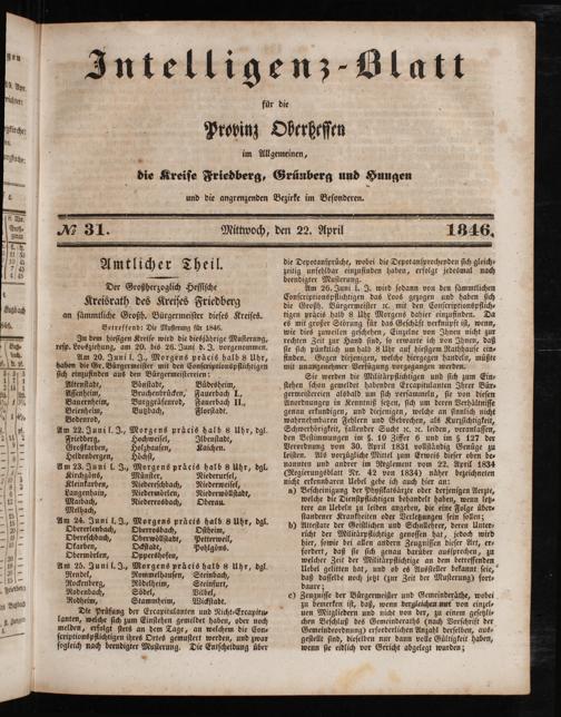 Intelligenzblatt für die Provinz Oberhessen. 1834-1834