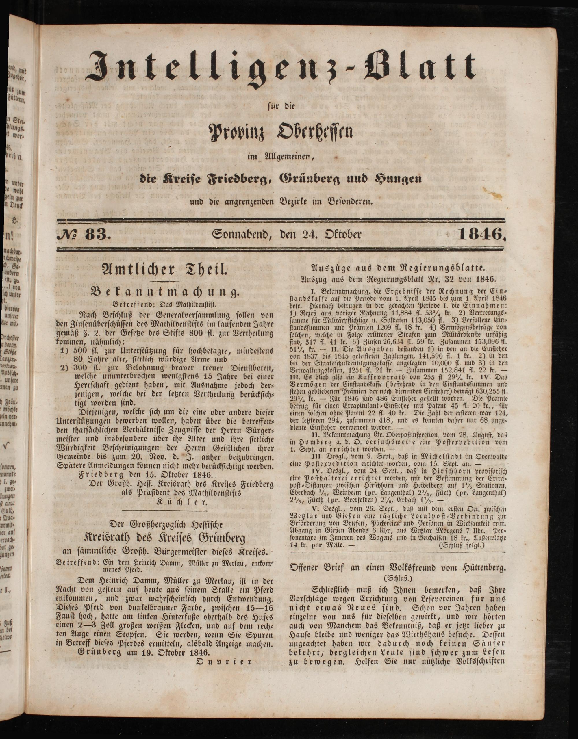 Intelligenzblatt für die Provinz Oberhessen. 1834-1834