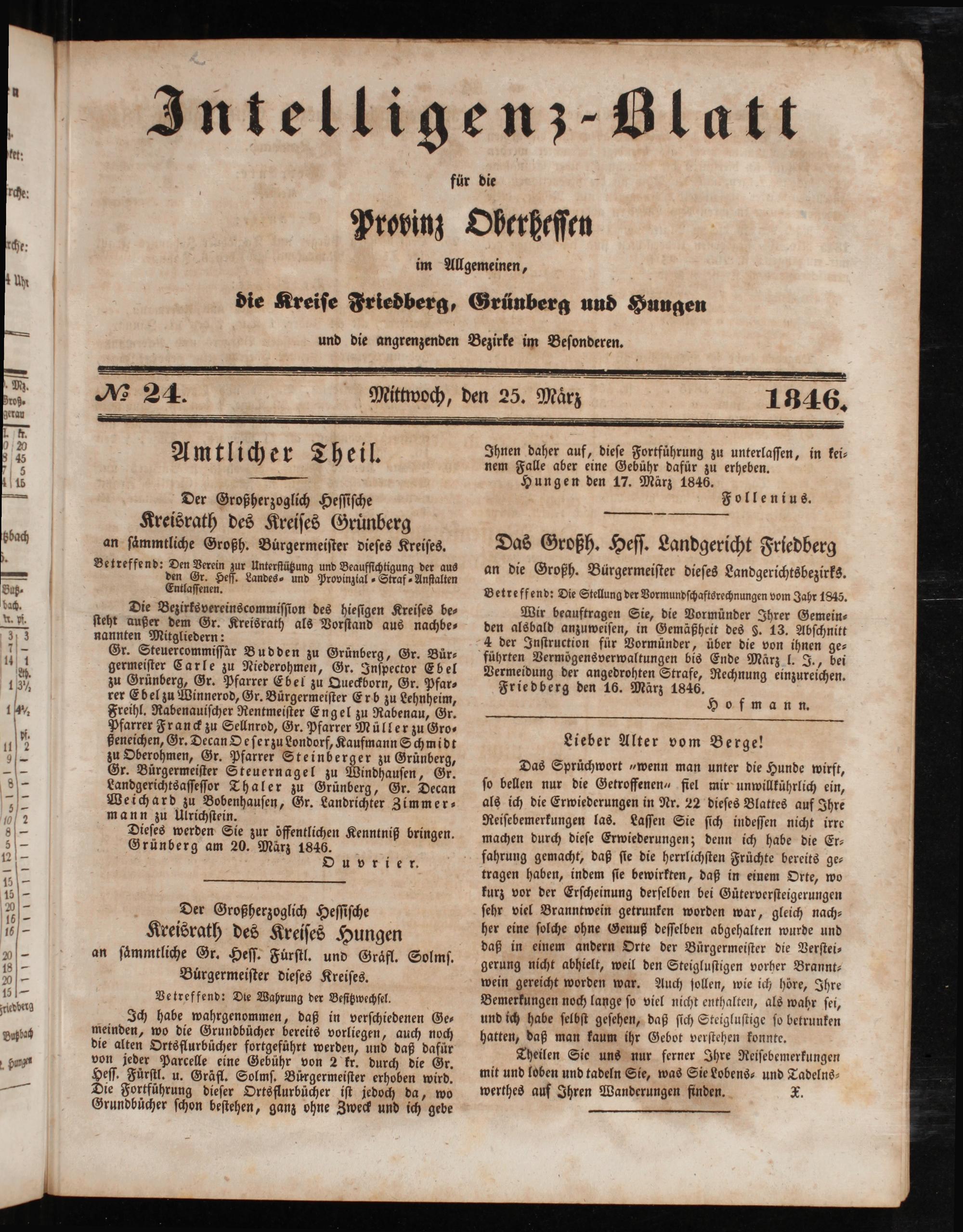 Intelligenzblatt für die Provinz Oberhessen. 1834-1834