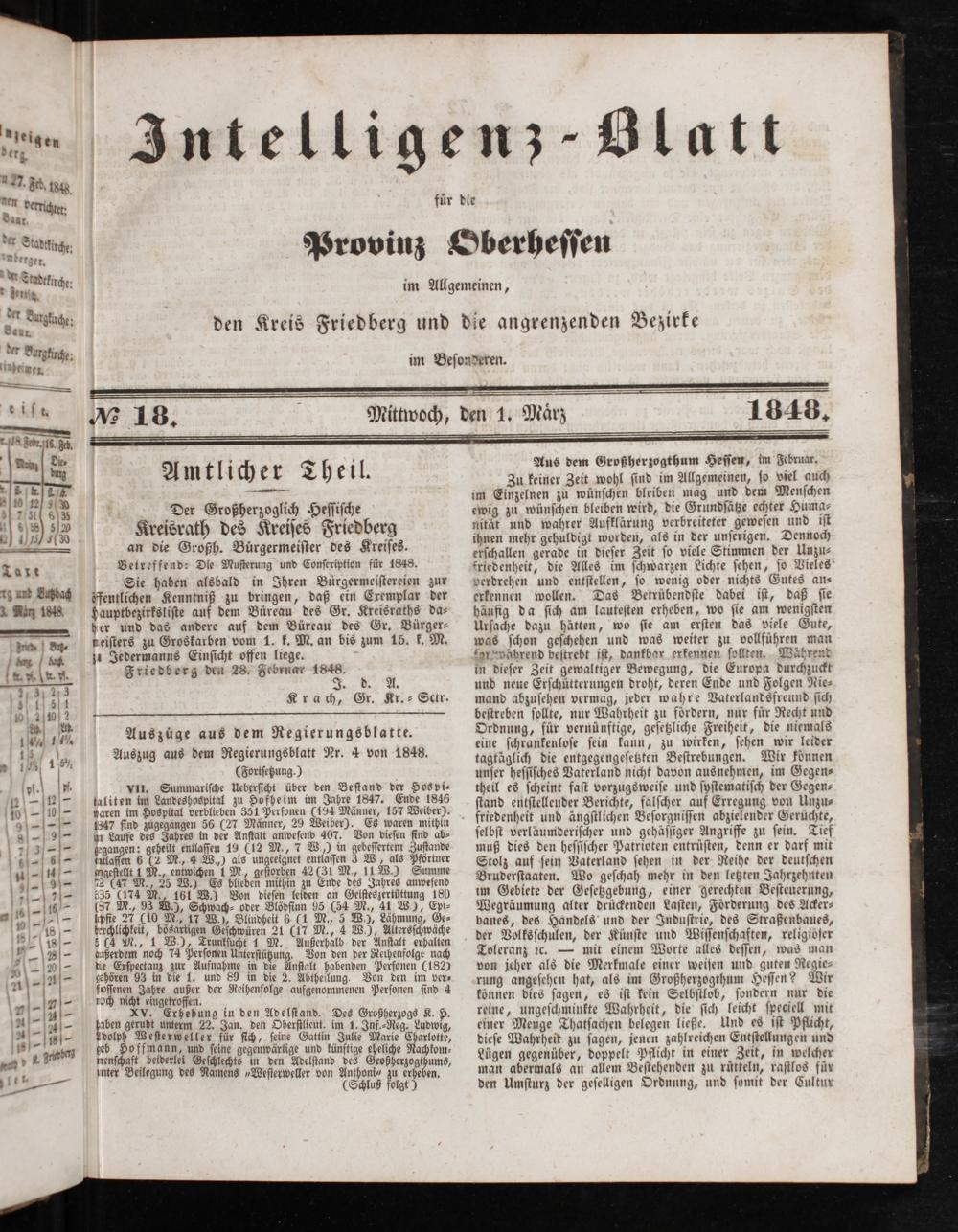 Intelligenzblatt für die Provinz Oberhessen. 1834-1834