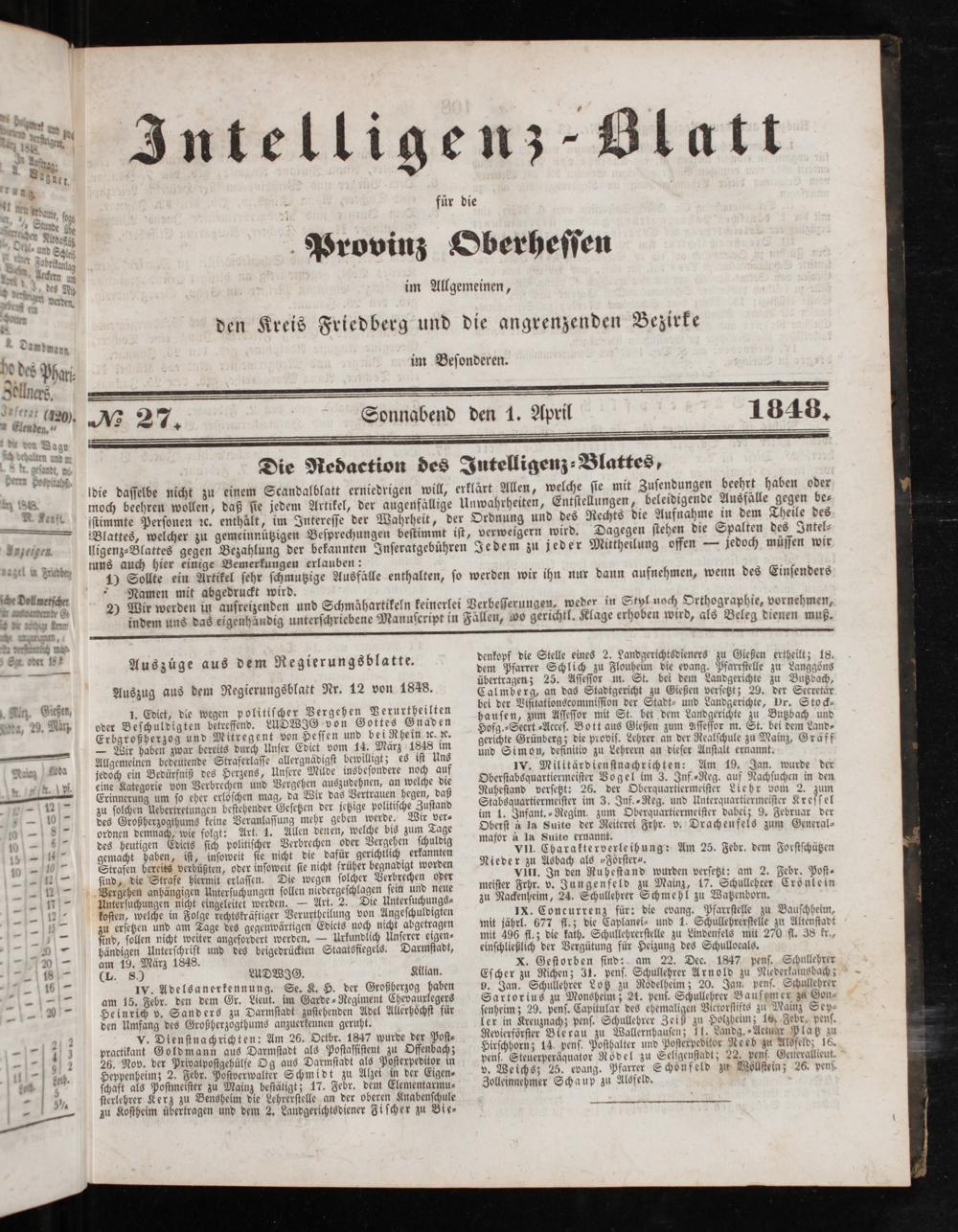 Intelligenzblatt für die Provinz Oberhessen. 1834-1834
