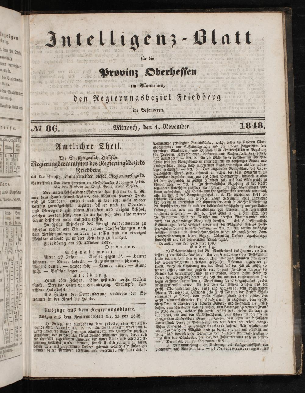 Intelligenzblatt für die Provinz Oberhessen. 1834-1834