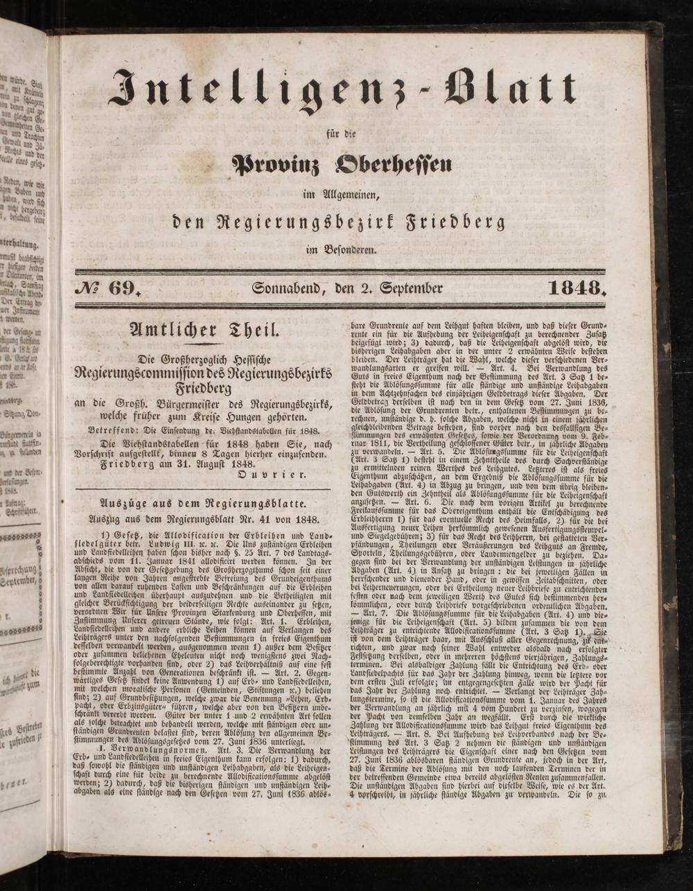 Intelligenzblatt für die Provinz Oberhessen. 1834-1834