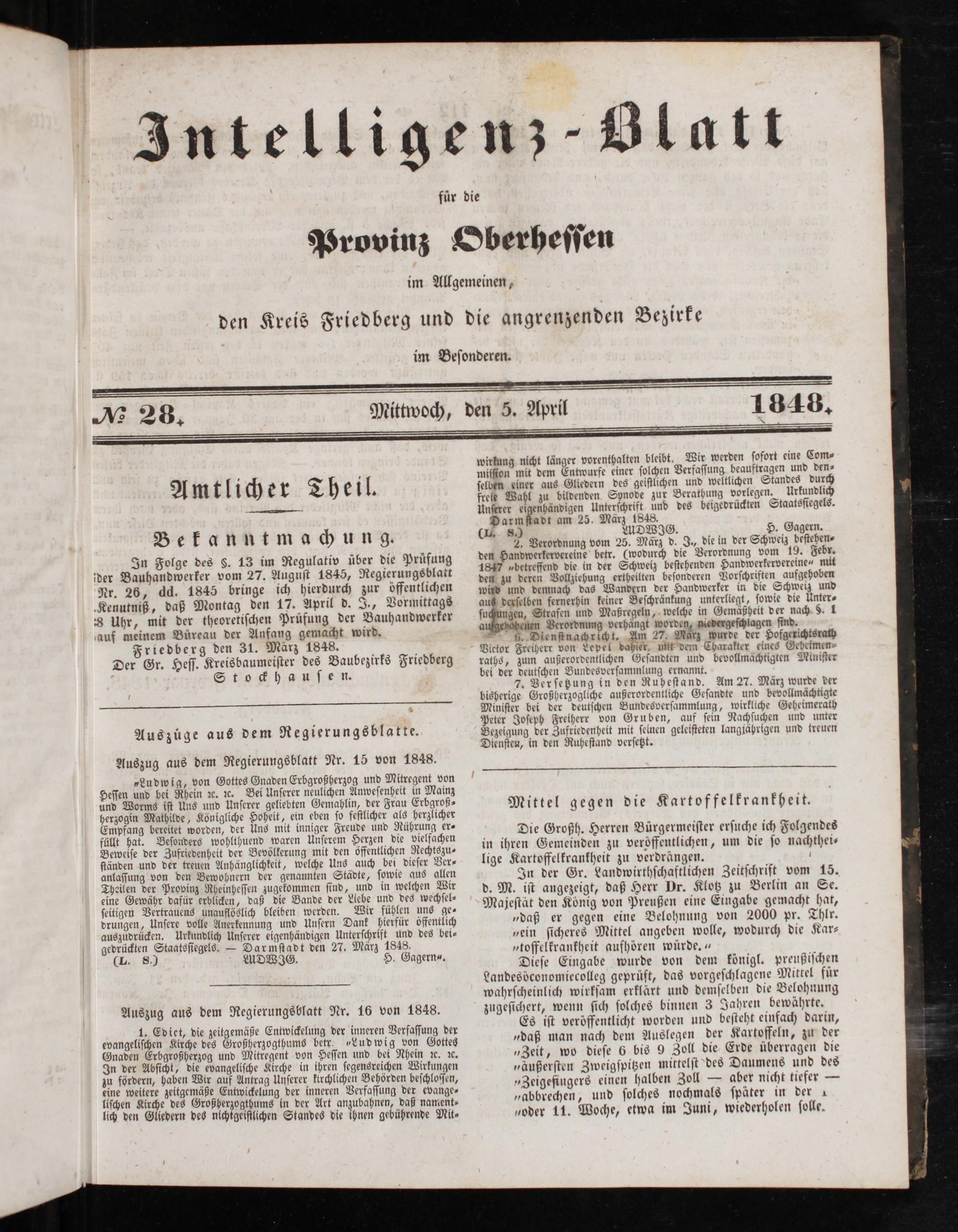 Intelligenzblatt für die Provinz Oberhessen. 1834-1834