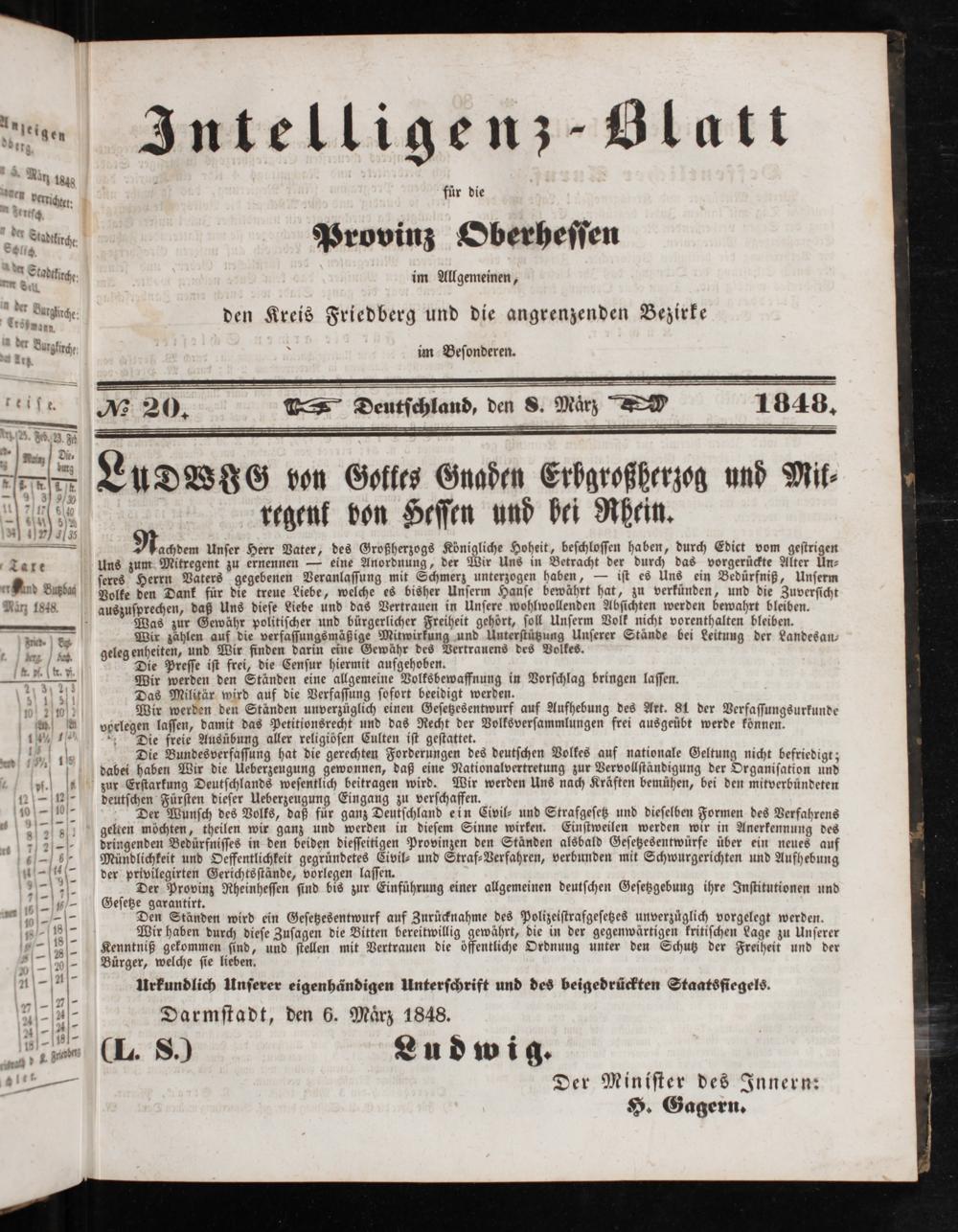 Intelligenzblatt für die Provinz Oberhessen. 1834-1834