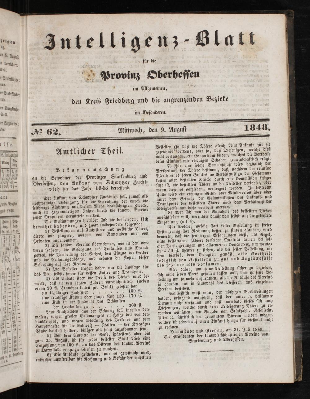 Intelligenzblatt für die Provinz Oberhessen. 1834-1834