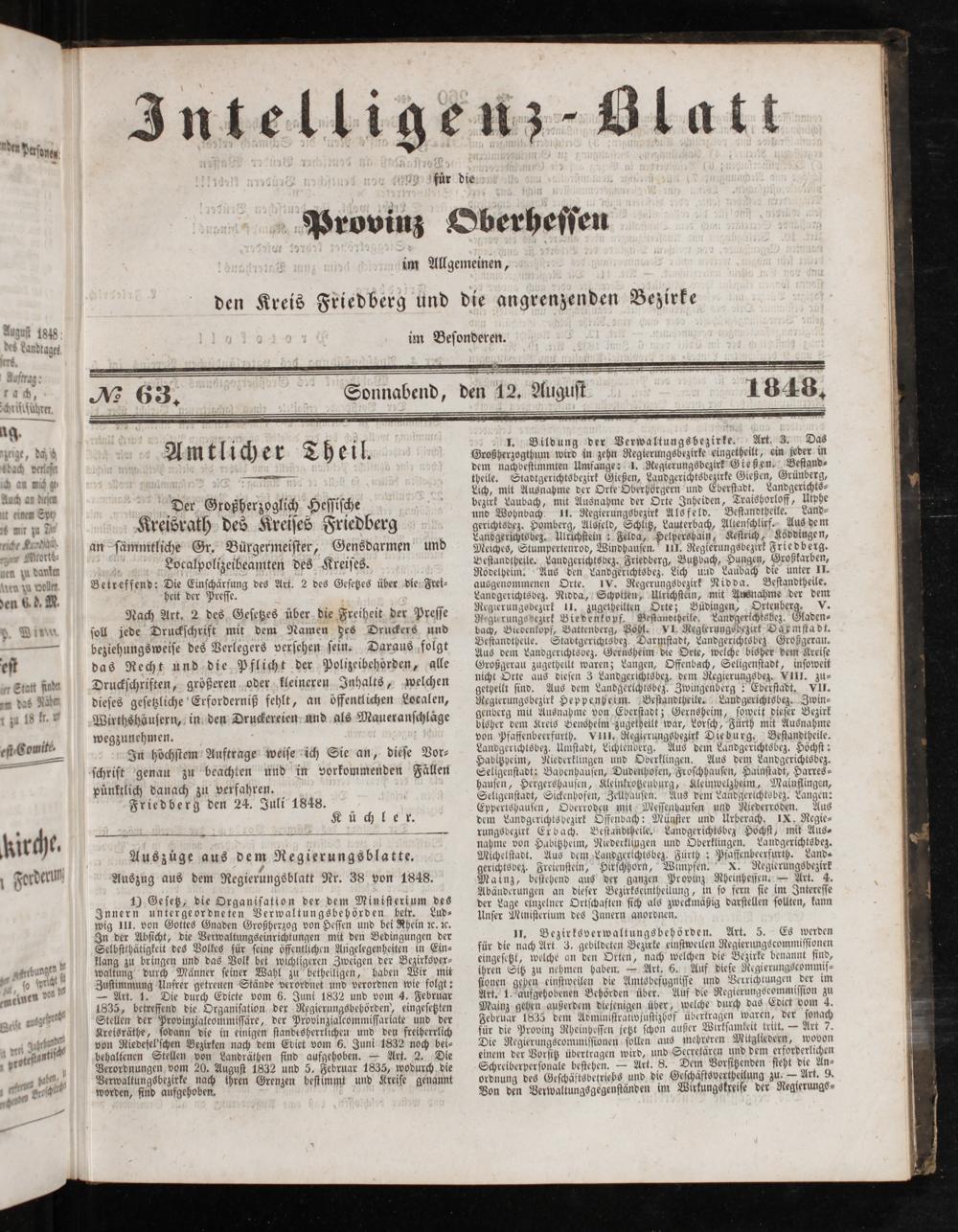 Intelligenzblatt für die Provinz Oberhessen. 1834-1834