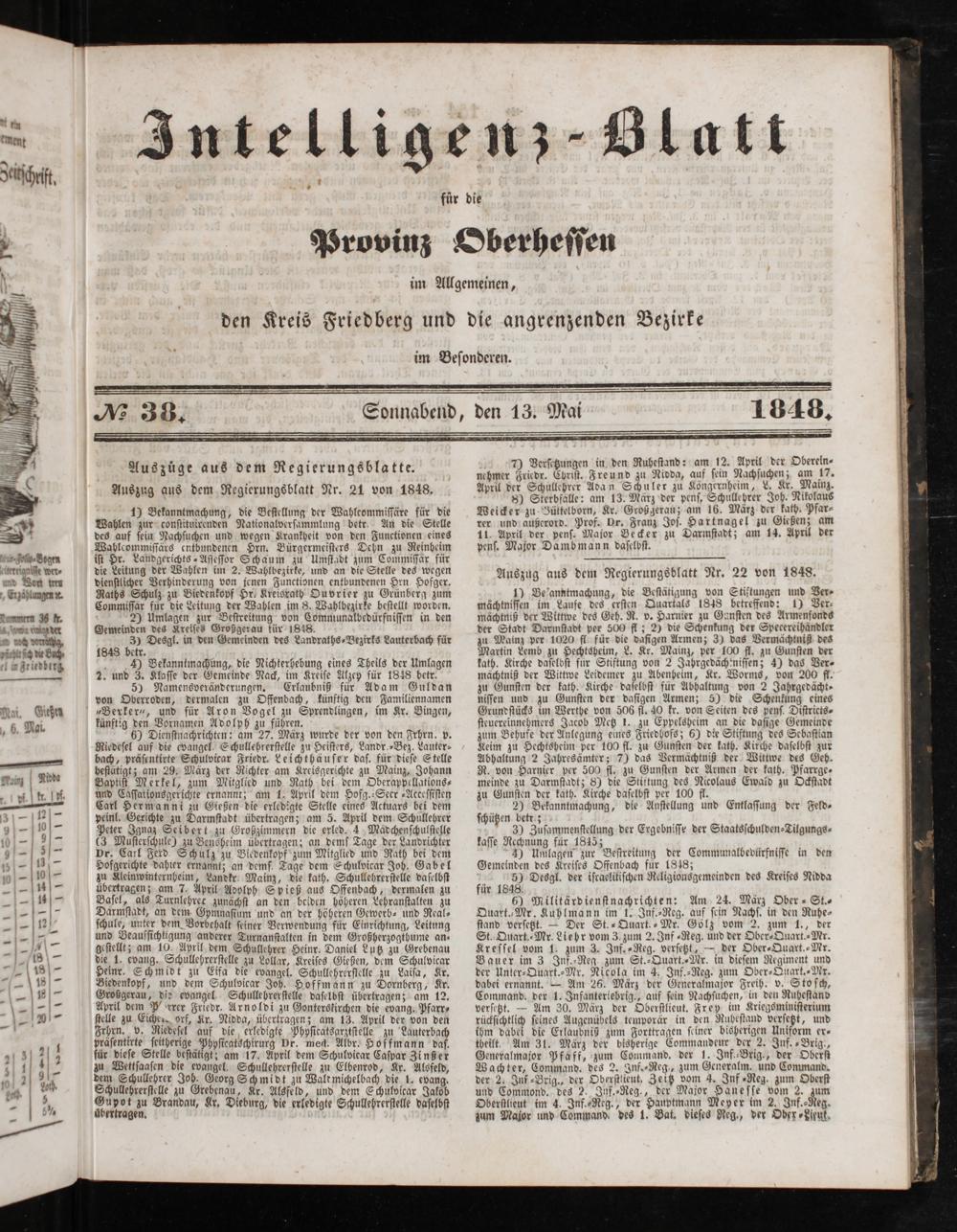 Intelligenzblatt für die Provinz Oberhessen. 1834-1834