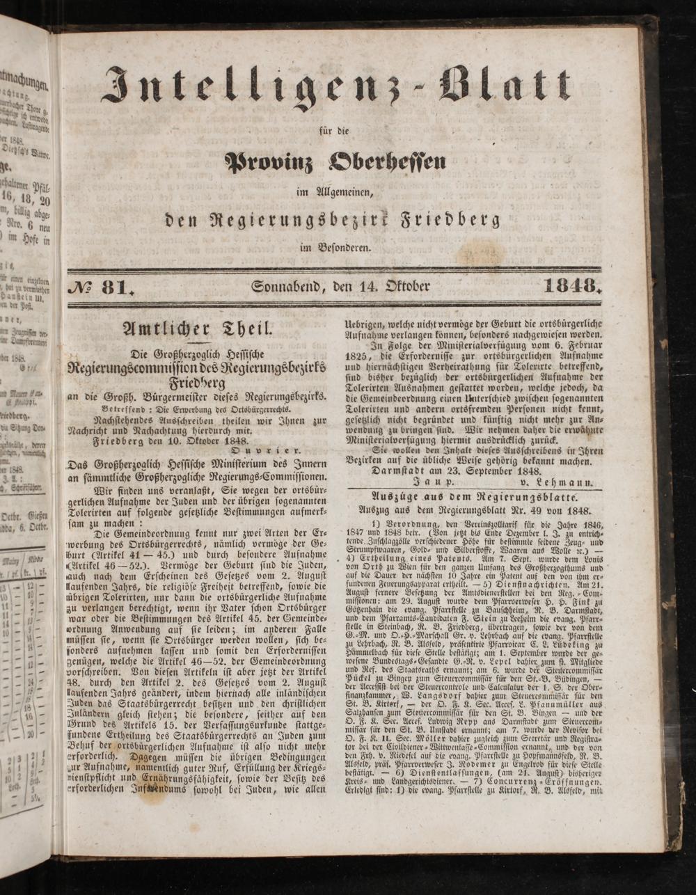 Intelligenzblatt für die Provinz Oberhessen. 1834-1834