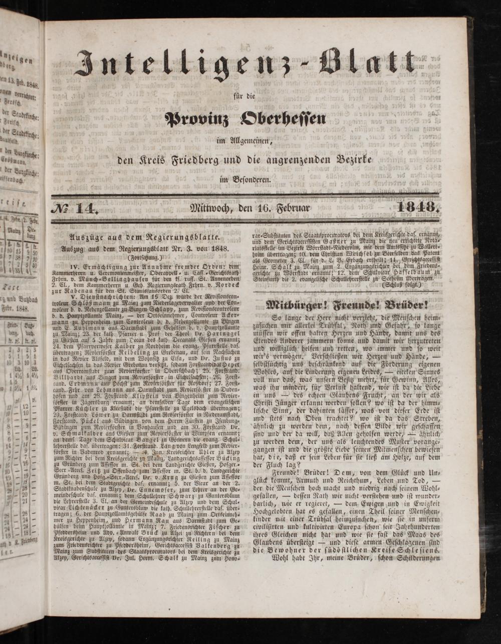 Intelligenzblatt für die Provinz Oberhessen. 1834-1834