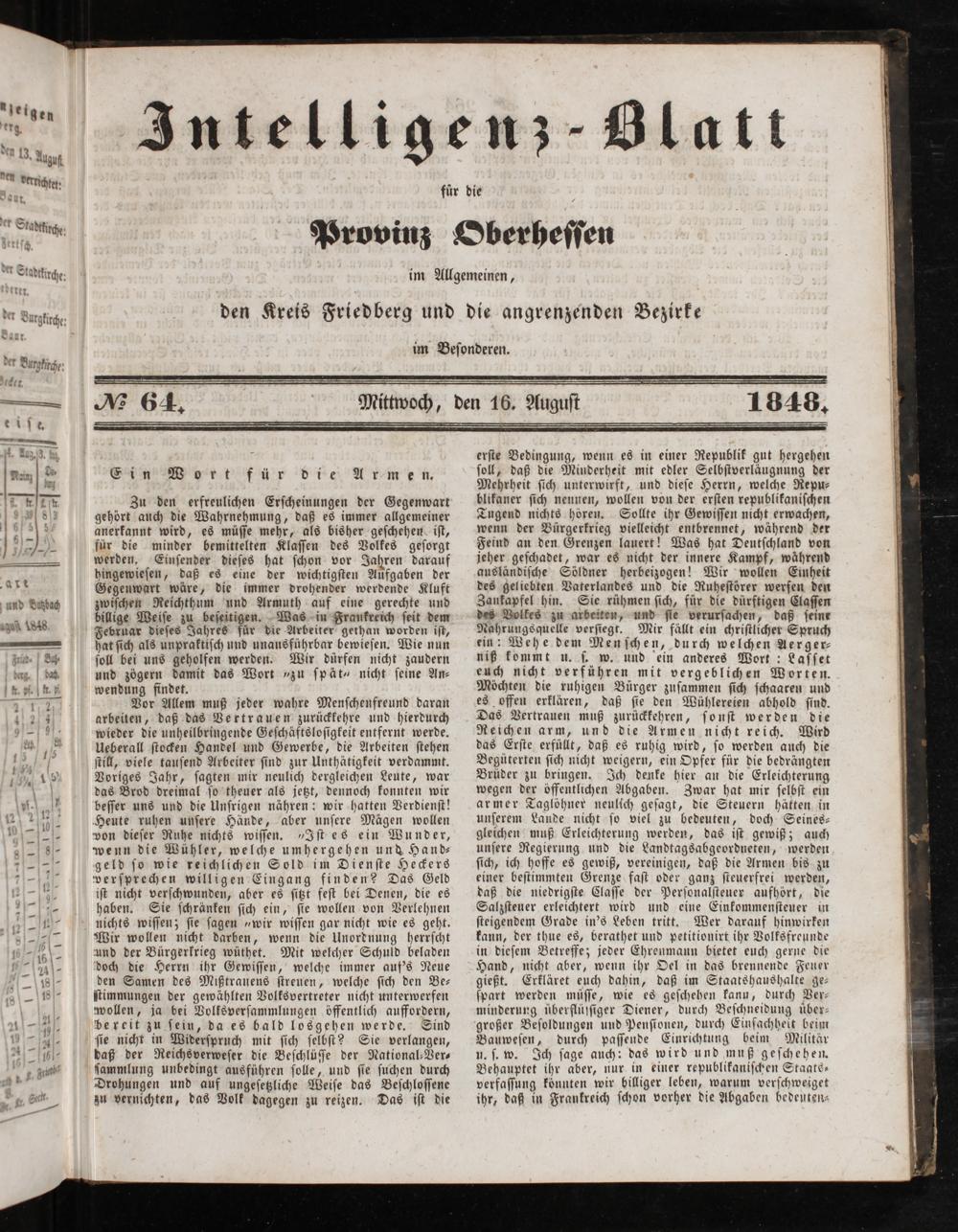 Intelligenzblatt für die Provinz Oberhessen. 1834-1834