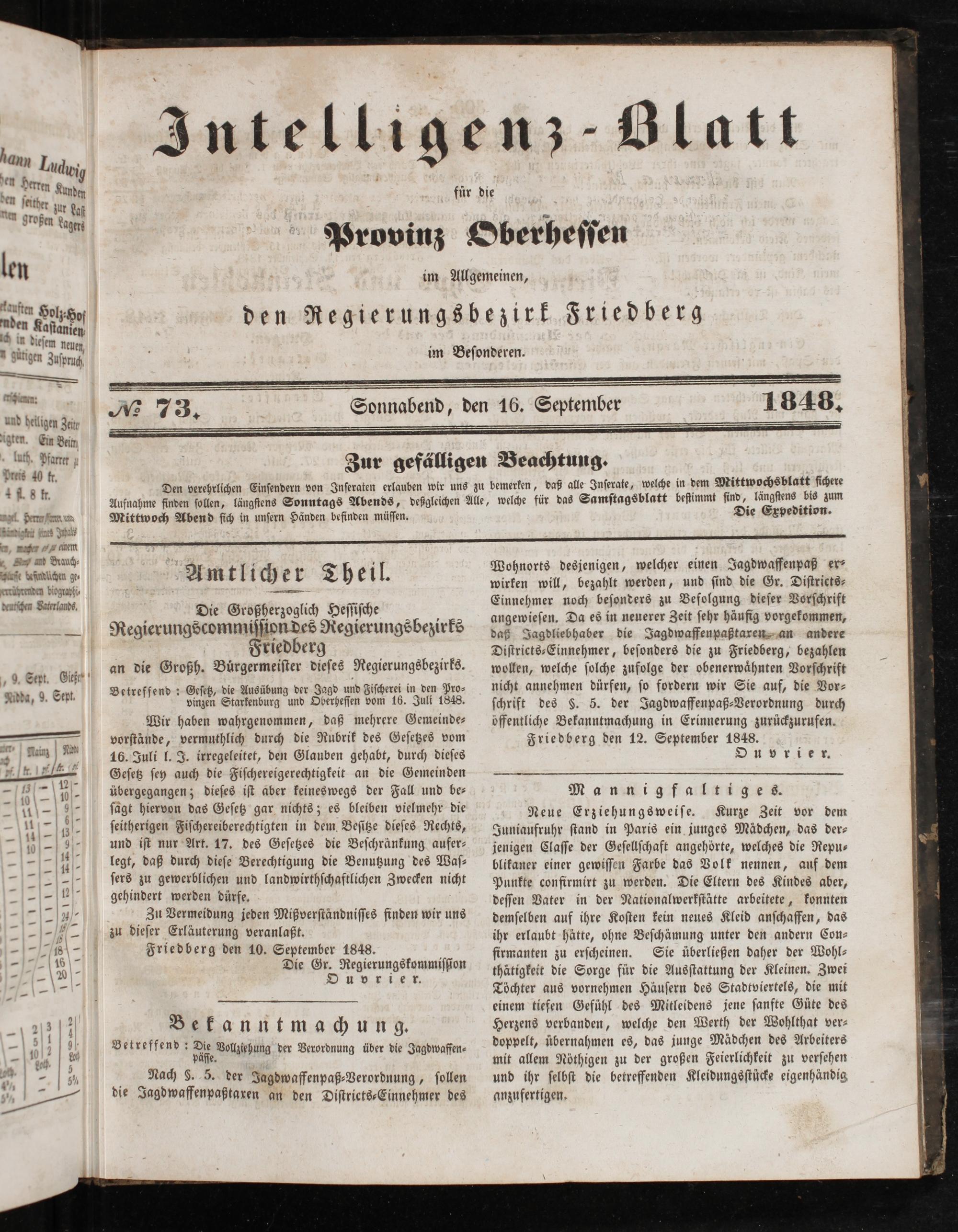 Intelligenzblatt für die Provinz Oberhessen. 1834-1834