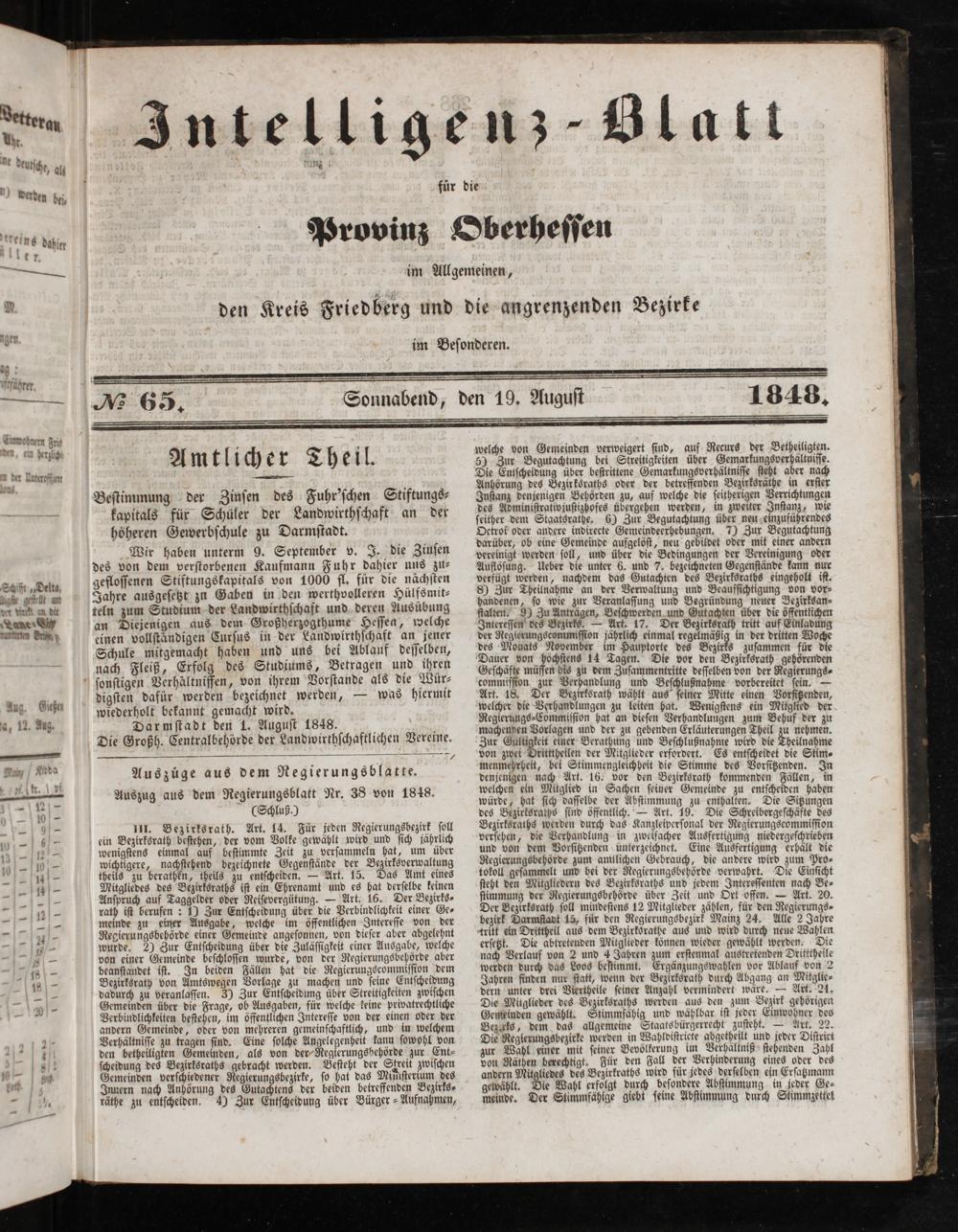 Intelligenzblatt für die Provinz Oberhessen. 1834-1834