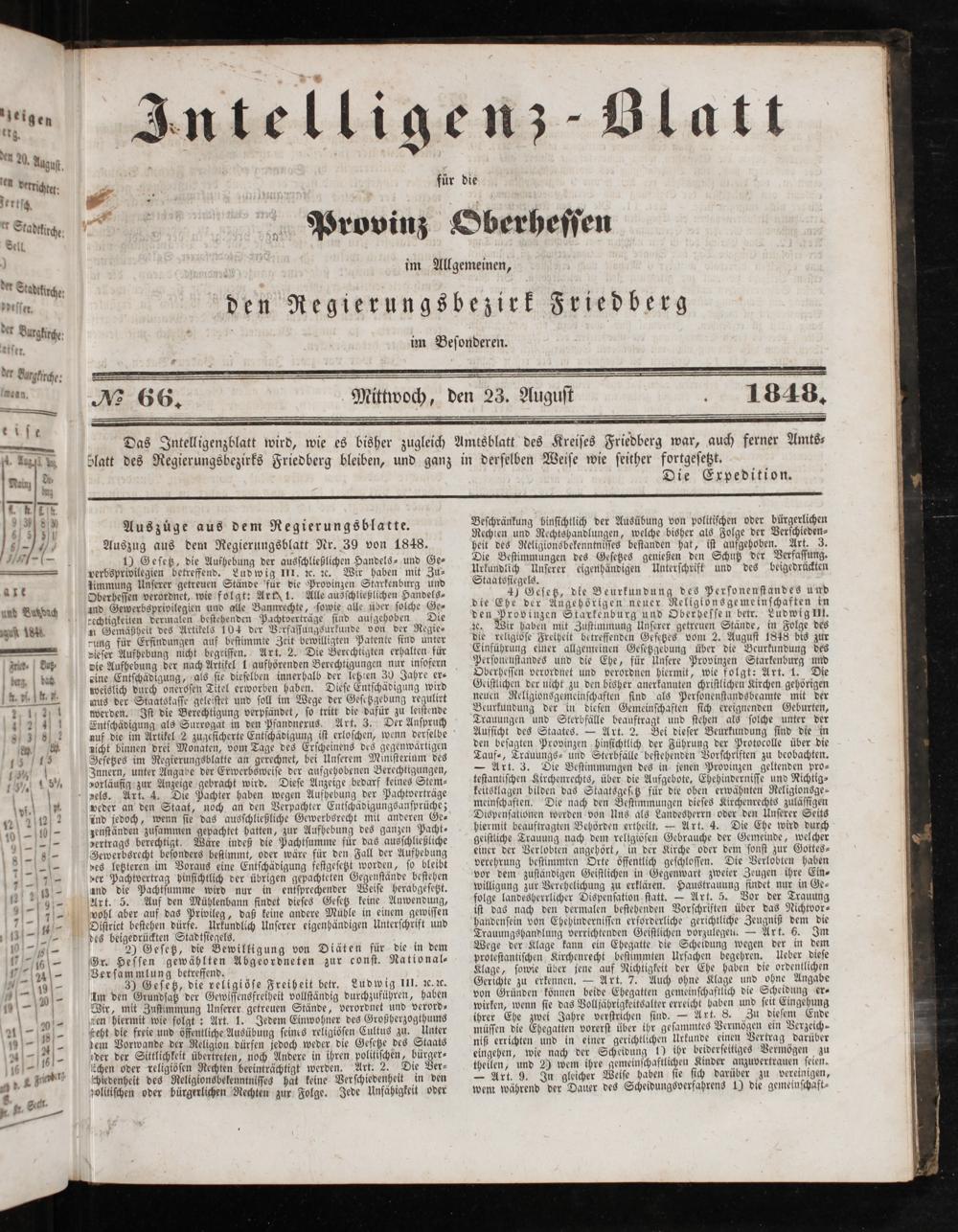 Intelligenzblatt für die Provinz Oberhessen. 1834-1834