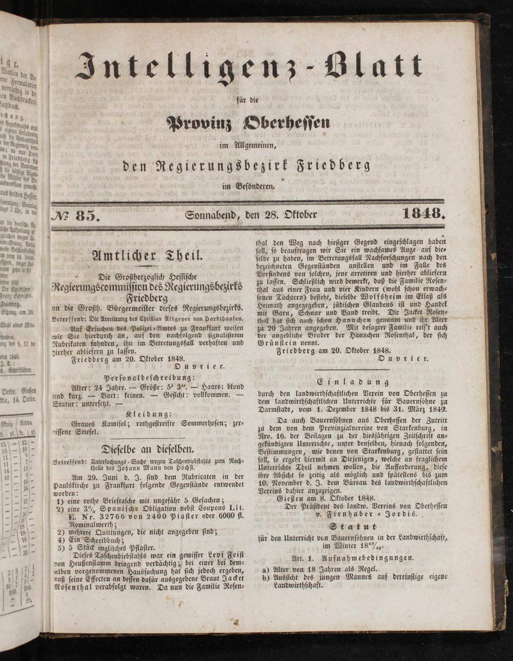 Intelligenzblatt für die Provinz Oberhessen. 1834-1834