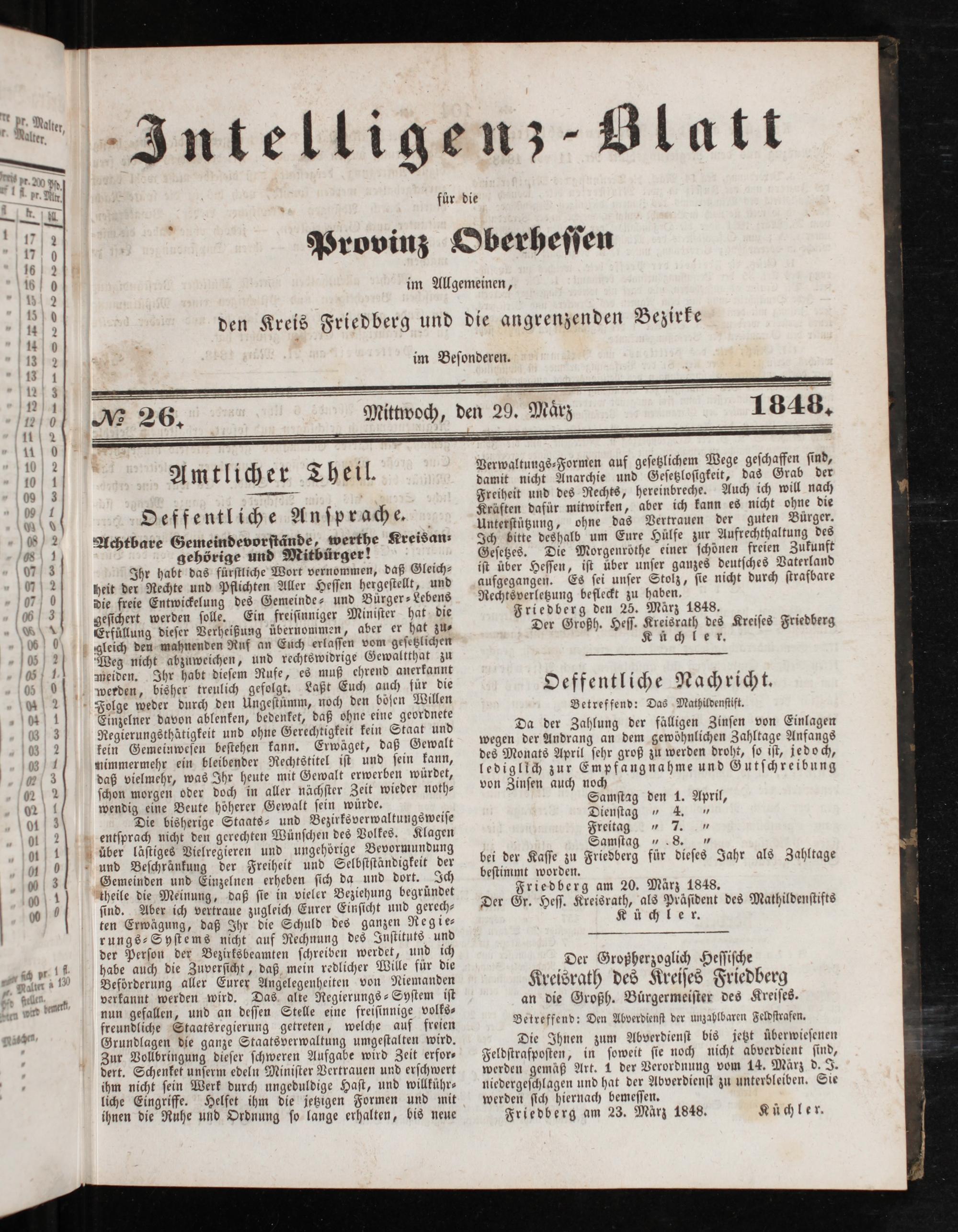 Intelligenzblatt für die Provinz Oberhessen. 1834-1834