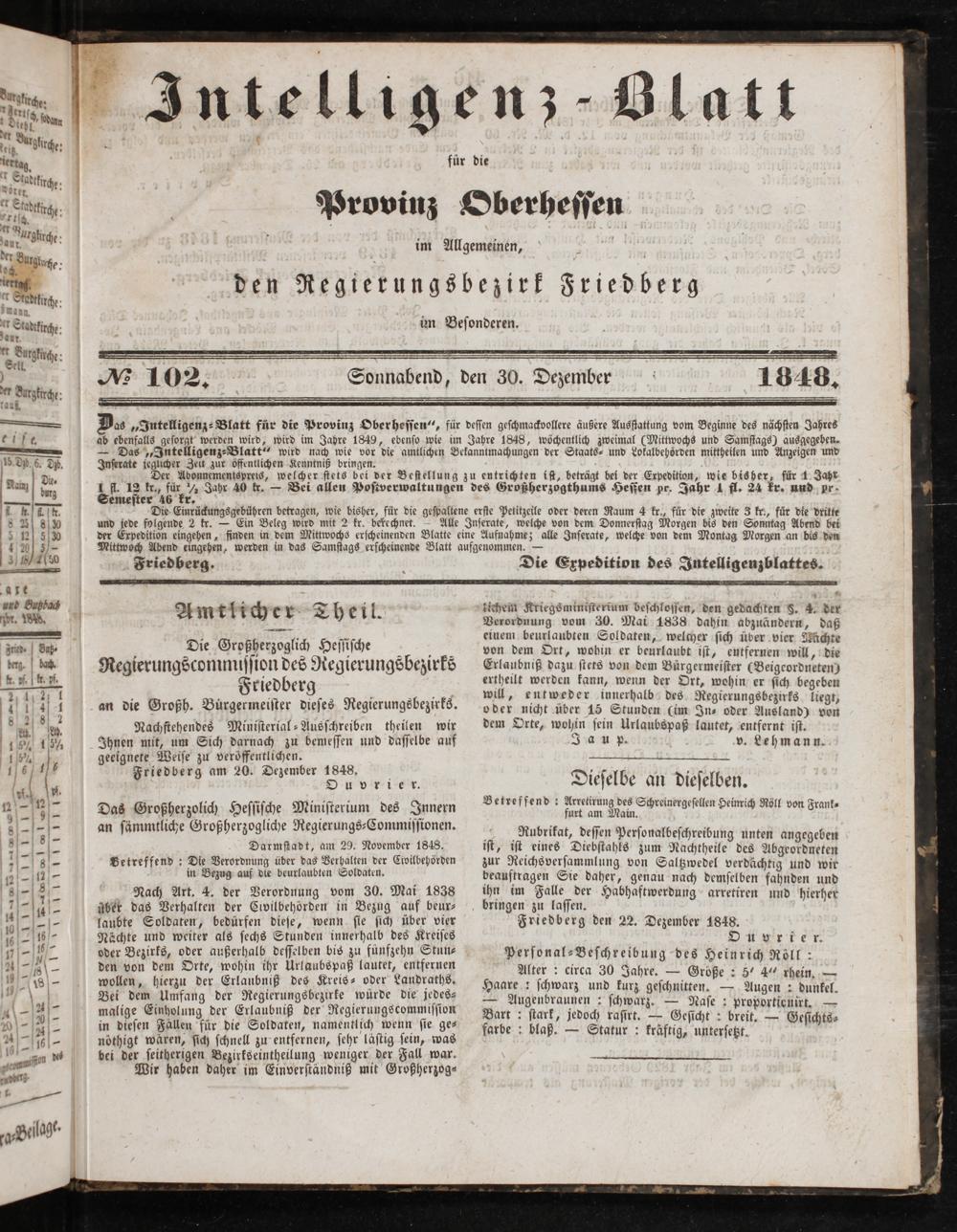 Intelligenzblatt für die Provinz Oberhessen. 1834-1834