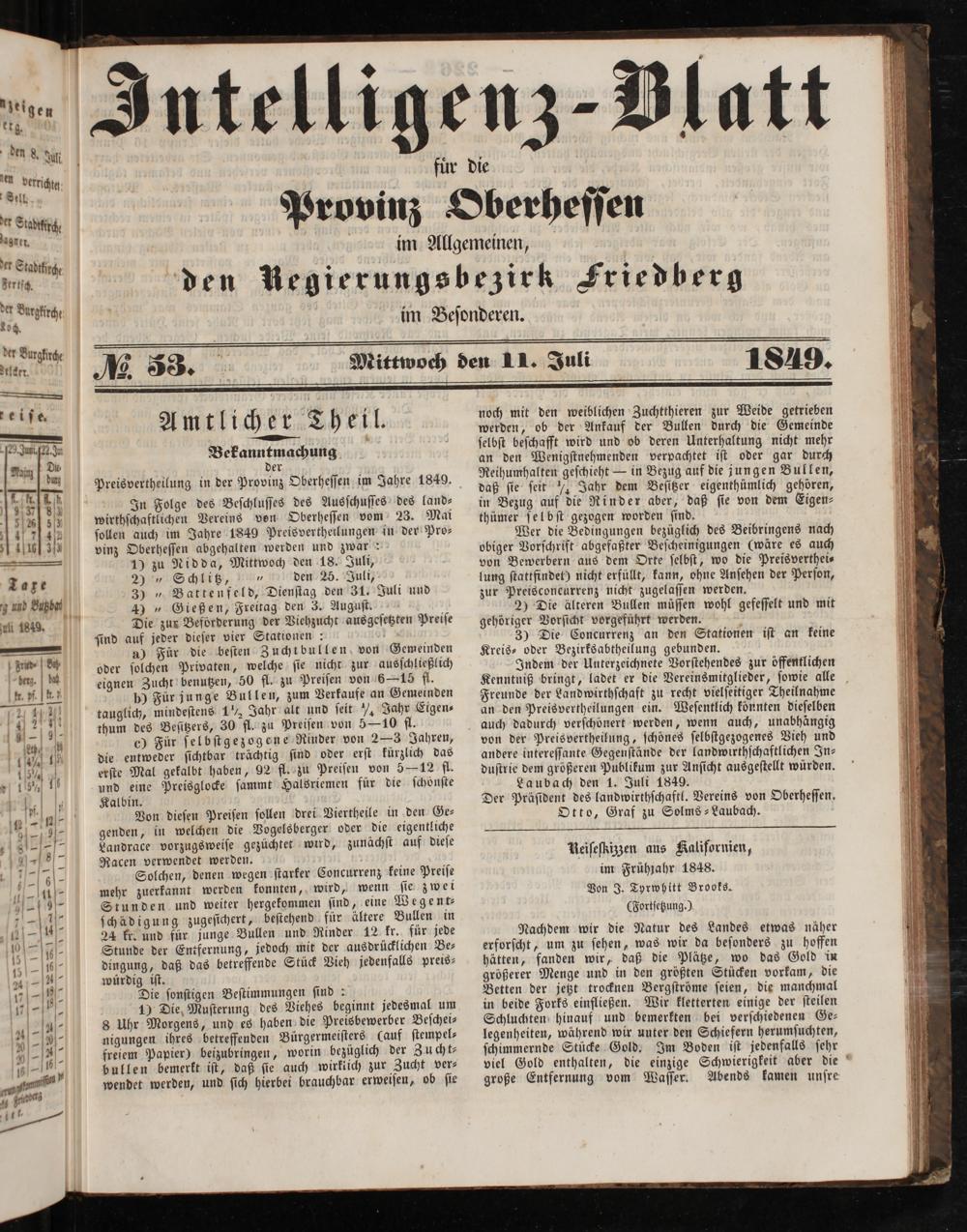 Intelligenzblatt für die Provinz Oberhessen. 1834-1834