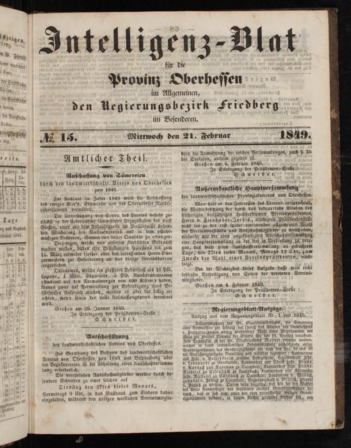 Intelligenzblatt für die Provinz Oberhessen. 1834-1834